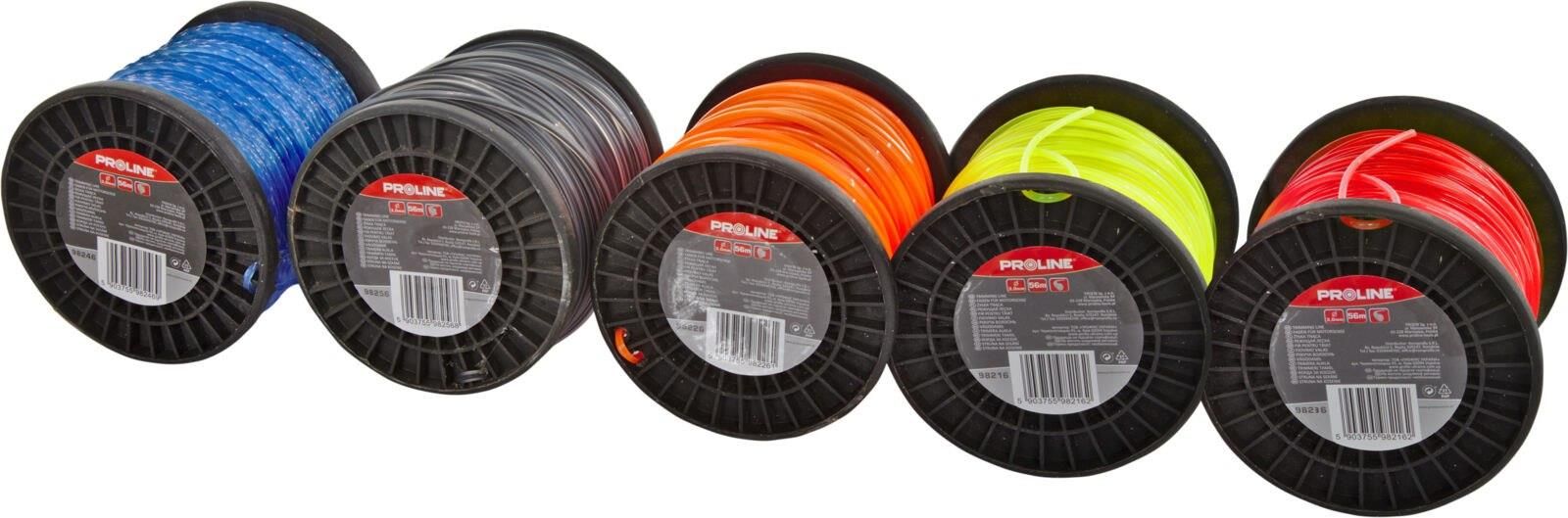 Proline żyłka tnąca wzmocniony kwadrat 3.0mm x 56m szpula (98256) Żyłka tnąca (szpula) Profesjonalna żyłka tnąca wzmocniona grubym rdzeniem i pokryta poszyciem Umożliwia odcinanie łodyg roślin o średnicy do 20 mm Do wszystkich dostępnych na rynku kos spalinowych i podkaszarek