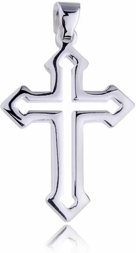 Elegancki wykonany z rodowanego srebra gładki srebrny krzyżyk, model KKS0016.