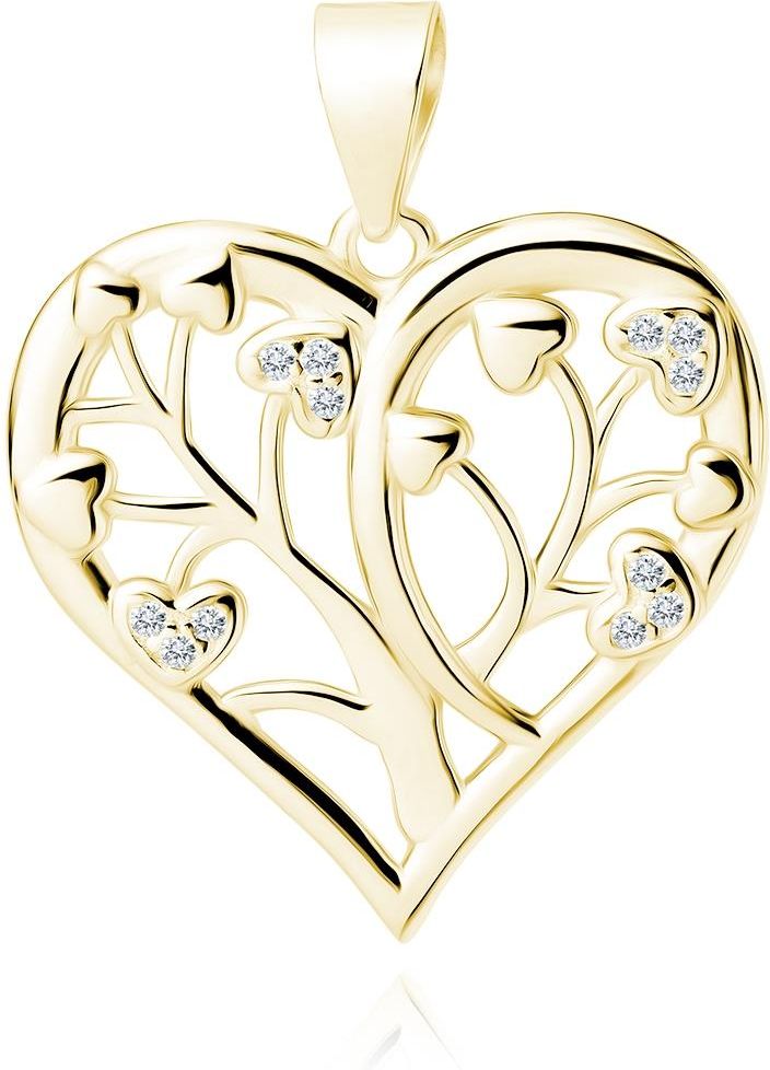 Elegancki wykonany z pozłacanego srebra wisiorek w kształcie serca, zdobiony umieszczonym wewnątrz motywem drzewa wysadzanym białymi cyrkoniami, model Z1986CG_W.