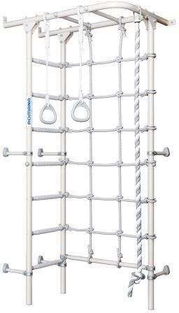 Drabinka gimnastyczna Funny Monkey 4W - biała Przyścienna drabinka do pokoju przeznaczona do montażu w rogu pokoju. Współczesny zestaw sportowy z siatką sznurkową pozwala optymalnie wykorzystać przestrzeń w mieszkaniu. Drabinka dla dzieci Funny Monkey 4W pomaga ćwiczyć siłę rąk za pomocą drabinki poziomej. ELEMENTY ZESTAWU metalowa drabina gimnastyczna drabinka pozioma kółka gimnastyczne lina gimnastyczna słupek z pajęczyną WAZNE Zestaw przeznaczony dla dzieci od 3 lat i dorosłych Dopuszczalne obciążenie drabinki z drążkiem: 100 kg Dopuszczalne obciążenie akcesoriów i siatki: 50 kg Głębokość zestawu: 70.2 cm Szerokość zestawu: 119 cm Wysokość zestawu: 219.6 cm Montaż: przyścienny, możliwy montaż siatki w lustrzanym odbiciu Kolorystyka: biała Zalecenia producenta: dzieci od 3 do 7 lat powinny ćwiczyć tylko pod nadzorem rodziców