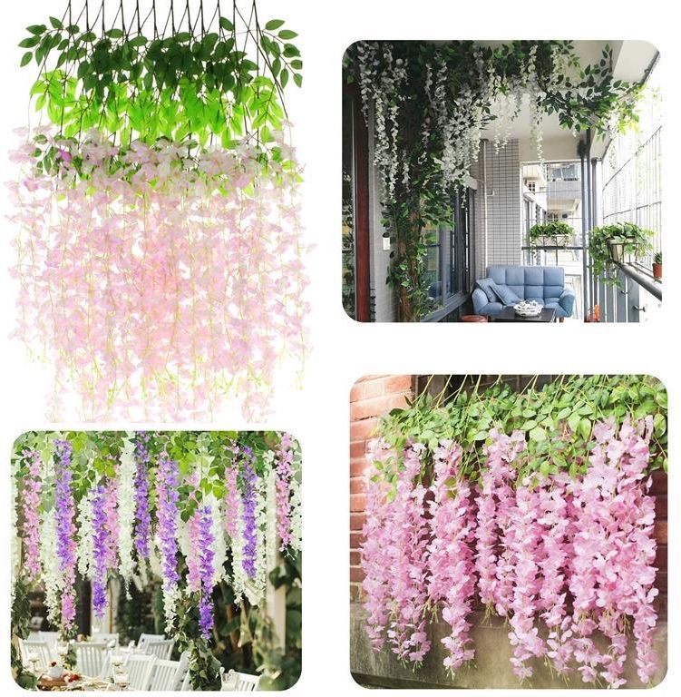 Wisteria Sztuczne Kwiaty Girlanda Glicynia Kwiaty Wiszące Dekoracja 12 szt - jasny róż Działoszyn
