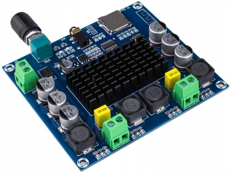 Moduł wzmacniacza audio opartego na układzie TDA7498 o mocy 2x100W z Bluetooth 5.0 oraz gniazdem na kartę i wejściem AUX Model: XH-A105 Napięcie zasilania: DC12~30V Wejścia: Bluetooth 5.0, gniazdo kart microSD, AUX Impedancja wyściowa: 4~8 ohms Moc: 2 x 100W Wymiary: 94 x 84 x 17mm Dzięki modułowi BT5.0 uzyskaj doskonałej jakości dźwięk! W zestawie: moduł wzmacniacza metalowa gałka głośności