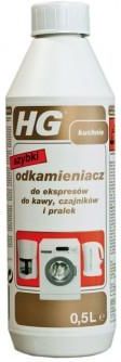 Odkamieniacz HG do ekspresów do kawy i czajników 500ml 174050129 Pojemność 0,5 l Płyn do usuwania osadu z wapnia opracowany specjalnie do usuwania resztek kamienia w aparaturze na gorącą wodę. Zawiera:niejonowe związki powierzchniowo czynne < 5%glikol kwas Sposób użycia: Ekspresy do kawy: rozcieńczyć pół filiżanki (50 ml) preparatu HG SZYBKI ODKAMIENIACZ w ½ litra wody i wlać ostrożnie roztwór do zbiornika. Włączyć ekspres żeby działał tak, jak przy robieniu kawy. Ostrożnie wylać roztwór. Jeśli ekspres przepuścił roztwór w sposób niedostateczny, powtórzyć działanie po wlaniu nowej mieszanki. Na koniec uruchomić ekspres do kawy na 3 cykle parzenia, przepuszczając przez niego czystą wodę, by nie zostały w nim resztki kamienia ani posmak roztworu. Czajniki: rozcieńczyć pół filiżanki (50 ml) preparatu HG SZYBKI ODKAMIENIACZ w ½ litra wody i ostrożnie wlać roztwór do czajnika. Nie włączać czajnika, lecz pozostawić w nim zimny roztwór na około 40 minut. Ostrożnie wylać roztwór. Działanie można ewentualnie powtórzyć. Na koniec czajnik należy gruntownie przepłukać. Pralki: na obszarach, na których występuje miękka woda wlać 1 filiżankę (100 ml), na obszarach, na których występuje twarda woda wlać 2 filiżanki (100 ml)preparatu HG SZYBKI ODKAMIENIACZ do zbiornika na proszek. Nastawić pralkę na najkrótszy program prania przy temperaturze 60 ºC. W połowie programu wyłączyć pralkę i pozostawić roztwór na około 20 minut do przeniknięcia, następnie kontynuować program aż do końca. Elementy grzewcze: (oprócz czajników) można również czyścić osobno. Nasmarować element grzewczy preparatem HG SZYBKI ODKAMIENIACZ przy pomocy pędzelka, pozostawić do wniknięcia i usunąć osad z wapnia miękką gąbką. Na koniec gruntownie przepłukać wodą. Uwaga:Przed zastosowaniem preparatu HG SZYBKI ODKAMIENIACZ należy zapoznać się z instrukcją obsługi urządzenia. Nie stosować środka na powierzchniach nieodpornych na działanie kwasu, jak aluminium, cynk i emalia. Do czyszczenia żelazek elektrycznych nigdy nie należy stosować płynu do usuwania osadu z wapnia, więc również preparatu HG SZYBKI ODKAMIENIACZ. Osad z wapnia może uszkodzić element, co może spowodować przeciek. Dlatego też należy regularnie oczyszczać z osadu z wapnia aparaturę wykorzystującą przepływ ciepłej wody tak, aby nie dopuścić do uszkodzenia elementu. Przydatność do użycia: minimum 36 miesięcy od daty produkcji na opakowaniu. Firma HG to ponad 30 lat tradycji w dostarczaniu najwyższej jakości rozwiązań dla czyszczenia, pielęgnacji i ochrony nowoczesnych powierzchni. Od czasu założenia firmy w 1975 roku w holenderskim Almere, HG rozprzestrzenia swoją działalność na kolejne kraje Europy.Od 1999 roku HG obecne jest w Polsce by pomagać Wam dobrać najlepsze środki do rozwiązania nawet najbardziej złożonych problemów z zakresu ochrony i pielęgnacji wszelkich powierzchni w domu.