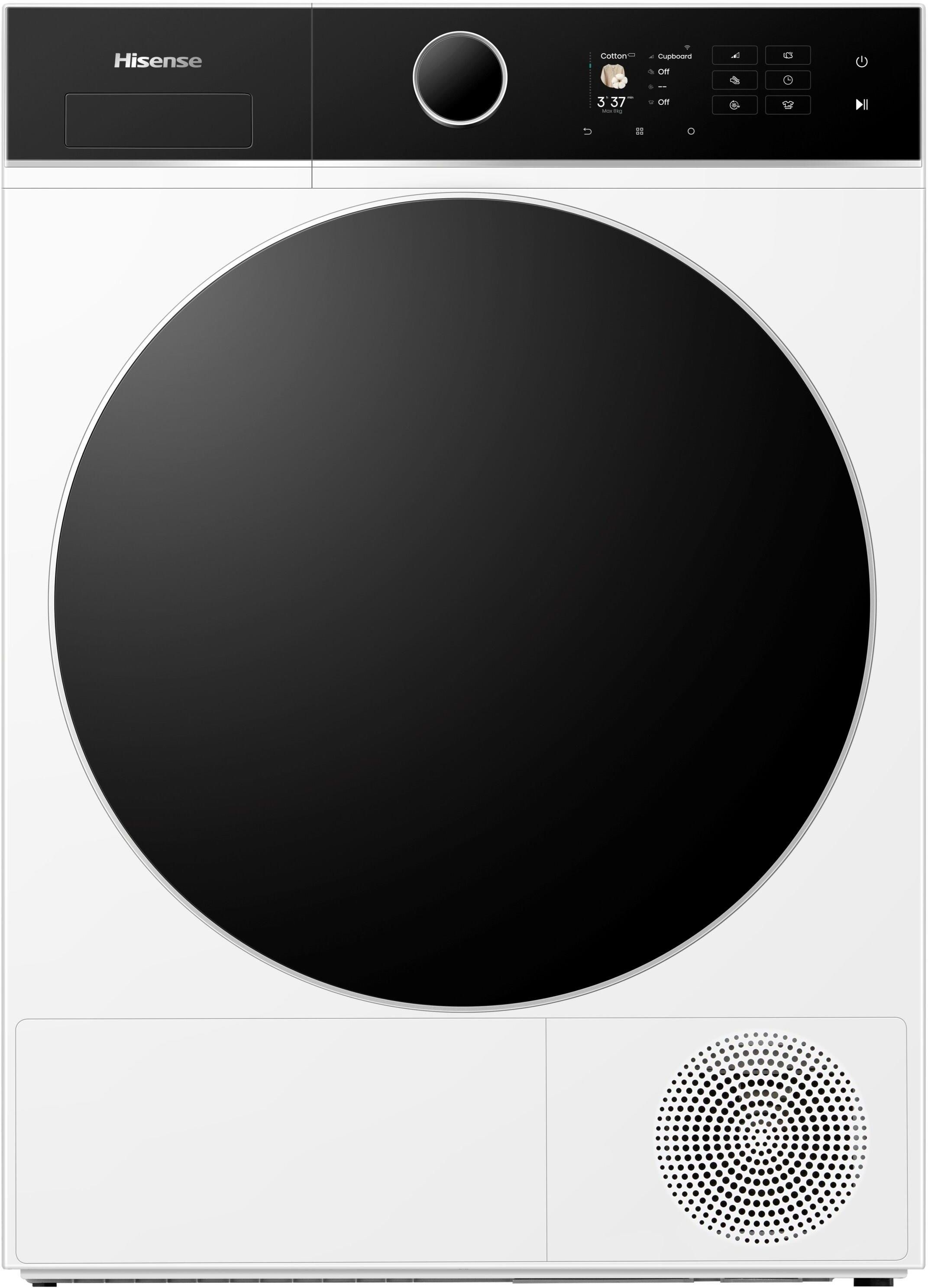 Suszarka bębnowa HISENSE DH5I804BWCD to nowoczesne urządzenie wolnostojące, które zapewnia komfort suszenia na najwyższym poziomie. Wyposażona w technologię pompy ciepła, oferuje efektywne suszenie przy niższym zużyciu energii, co potwierdza klasa energetyczna C oraz zużycie 101 kWh na 100 cykli.