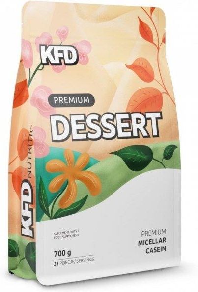 KFD Dessert 700 g Pistacjowy OPIS: KFD Premium Dessert to produkt wysokobiałkowy pozyskiwany w procesie ultrafiltracji, ewaporacji oraz suszenia. Wykorzystanie ultrafiltracji umożliwia otrzymanie produktu o niskiej zawartości laktozy (tylko 2,5%), natomiast proces ewaporacji i suszenia usuwają nadmierną ilość wody. Białko deserowe KFD to czysta kazeina micelarna, która stanowi idealne źródło aminokwasów - ze względu na swoją strukturę powoduje długotrwałe i stopniowe uwalnianie peptydów do krwiobiegu (nawet do 12 godzin). Nasz produkt charakteryzuje się gęstą, budyniową konsystencją oraz doskonałym smakiem dzięki czemu może być spożywany jako shake, deser lub samoistne danie np. kolacja (kazeina micelarna doskonale nadaje się na posiłek przed snem). Używamy w 100% czystej kazeiny micelarnej, bez domieszek mniej wartościowych form kazeiny, np. kazeinianu wapnia. Dzięki temu produkt jest tak doskonały smakowo oraz jakościowo. Zaletą produktu jest również brak aspartamu i innych niekorzystnych dla zdrowia wypełniaczy w tym sztucznych barwników (oznaczanych jako E). Produkt dostarcza w jednej porcji aż 24 gramy pełnowartościowego białka i zapewnia długotrwały, stopniowy dopływ aminokwasów! SKŁADNIKI: Izolat białka mleka, kakao (dla smaków czekoladowych), Substancja zagęszczająca: guma konjac, aromat (brak w przypadku smaku naturalnego), regulator kwasowości: kwas cytrynowy, (brak w przypadku smaku naturalnego, sól, substancja słodząca (brak w przypadku smaku naturalnego): sukraloza. Zawartość : Wielkość opakowania: 700 g Porcja jednorazowa: 30 g dwa razy dziennie Ważne informacje: sposób użycia, przechowywania, przeciwwskazania! Jedną porcję - 30 g (1 miarki) należy wsypać do naczynia z 150 ml mleka lub wody i za pomocą miksera bądź blendera mieszać ok. 2 minut do uzyskania jednolitej, gęstej konsystencji. Można podawać z bakaliami lub owocami w formie deseru. Stosować w zależności od indywidualnych potrzeb, nie częściej niż dwa razy dziennie, bezpośrednio po przygotowaniu. Nie przekraczać zalecanej do spożycia porcji w ciągu dnia. Nie stosować w przypadku uczulenia na którykolwiek ze składników produktu. Produkt nie może być stosowany jako substytut (zamiennik) prawidłowo zróżnicowanej diety. Zrównoważony sposób żywienia i prawidłowy tryb życia jest ważny dla funkcjonowania organizmu człowieka. Pamiętaj, że tylko zdrowy tryb życia i zrównoważony sposób odżywiania zapewniają prawidłowe funkcjonowanie organizmu i zachowanie dobrej kondycji. Suplement diety jest przeznaczony dla osób dorosłych. Produkt nie powinien być stosowany przez osoby z chorobami nerek lub wątroby. Produkt nie powinien być stosowany przez dzieci, kobiety w ciąży i karmiące piersią. Przechowywanie: Przechowywać w szczelnie zamkniętym opakowaniu w temperaturze pokojowej, z dala od małych dzieci. Najlepiej spożyć / zużyć przed: Najlepiej spożyć przed: dzień, miesiąc, numer partii i rok trwale oznaczono na opakowaniu. Producent: KFD sp. z o.o. Solec 28 00-403 Warszawa