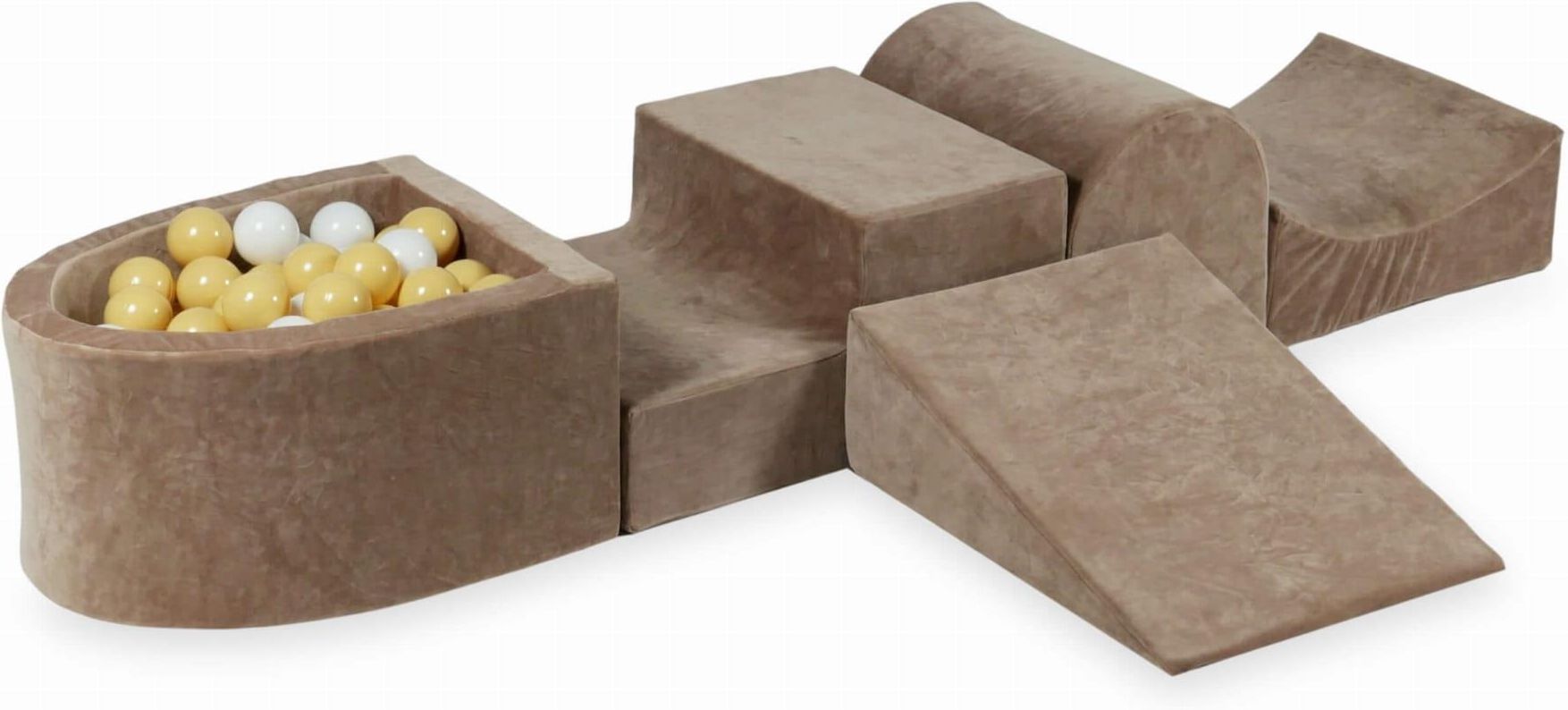 Mimii Piankowy Plac Zabaw Z Górką I Z Basenem Micro Velvet Soft Ciemny Beżowy + 100 Piłek (Białe Beżowe) Dzierzgoń