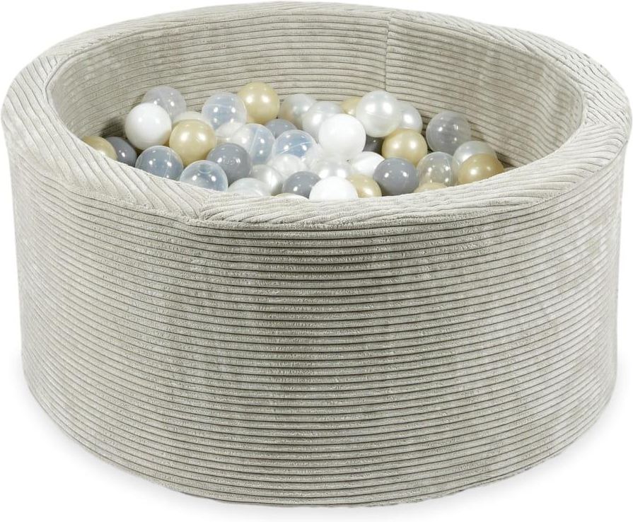 Mimii Suchy Basen 90X40 Sztruks Szary Z Piłeczkami 300Szt. Przezroczyste Białe Perłowe Szare Jasnozłote Dzierzgoń