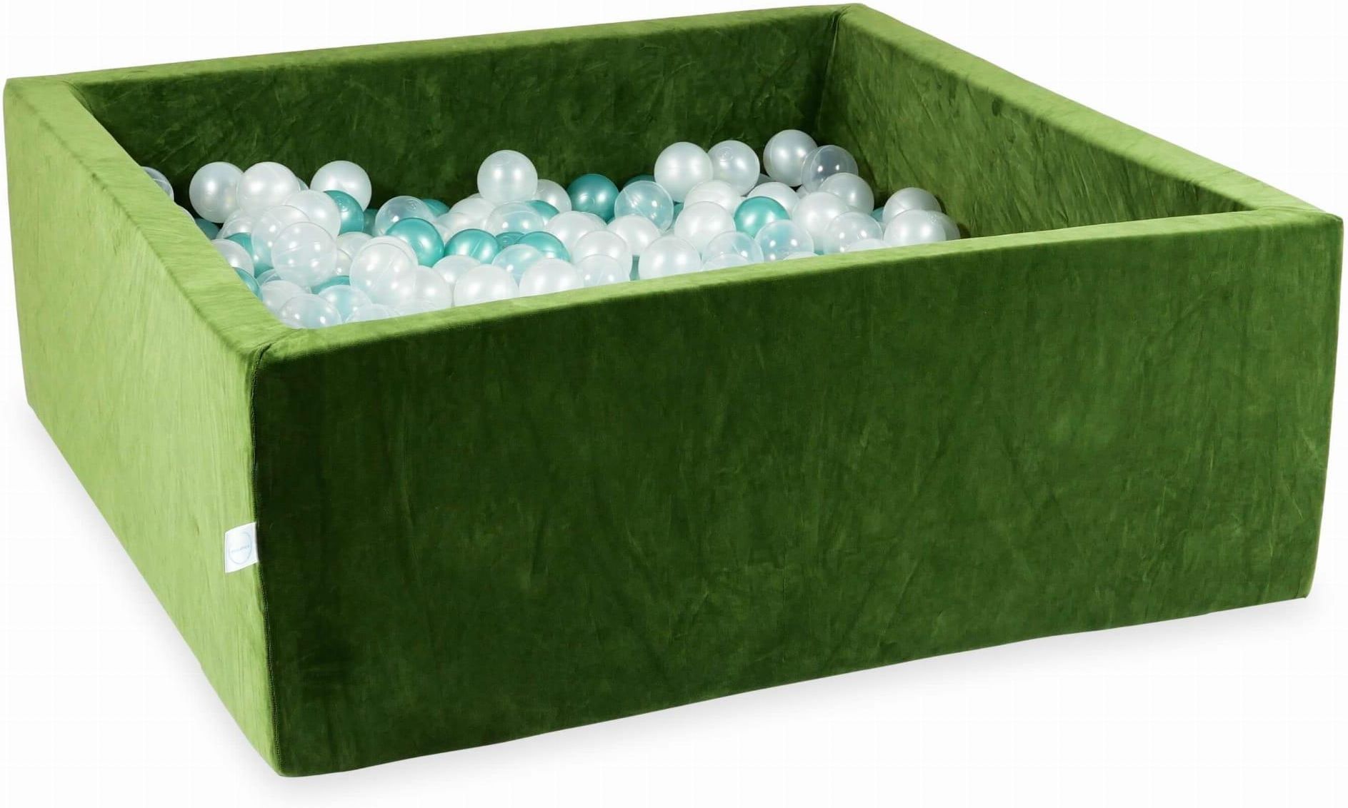 Suchy Basen Mimii 110X110X40 Velvet Soft Oliwkowy Z Piłeczkami 600 Szt. (Przezroczyste Perłowe Metaliczny Turkus) Dzierzgoń