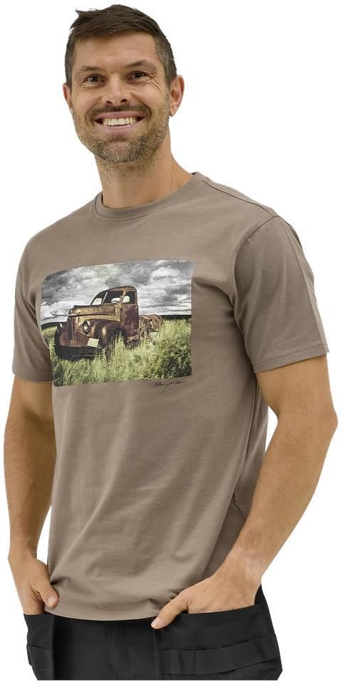 Wygodny t-shirt o ładnym fasonie. Koszulka ma melanżowy materiał i ładny nadruk na piersi.