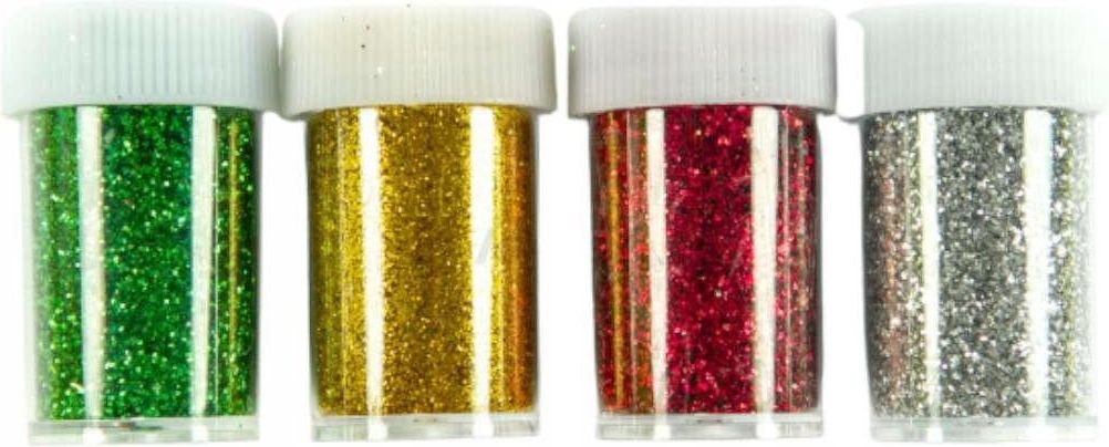 Brokat sypki "Classic Box", 4x8g, Brewis Cztery sypkie brokaty w kolorze zielonym, złotym, czerwonym niebieskim w wygodnych opakowaniach typu słoiczek - dzięki temu nie rozsypuje się i można go precyzyjnie aplikować na różnego rodzaju ozdoby. Takie kolorowe błyszczące brokaty mają zastosowanie w scrapbookingu i decoupage. marka: Brewis, ilość: 4 szt, kolor: zielony, złoty, czerwony, srebrny, waga: 4x8g, kod produktu: BWGL804, ...