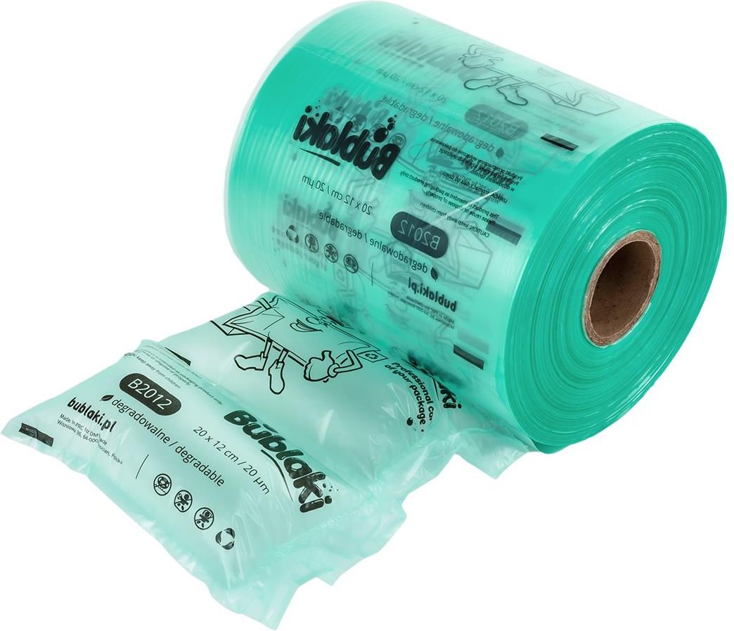 Bublaki 20 x 12 cm to degradowalne (ECO) wypełniacze do paczek, które gwarantują niezawodną ochronę produktów Towary przed wysyłką należy odpowiednio zabezpieczyć tak, aby podczas transportu nie uległy nawet najmniejszym uszkodzeniom. Dobrze przygotowana paczka w oczach klienta świadczy o naszym profesjonalnym podejściu. Poduszki powietrzne Bublaki to świetny, funkcjonalny system wypełnień, zapewniający ochronę zawartościom przesyłek nawet w trudnych warunkach. Niezawodna ochrona zawartości przesyłek Poduszki powietrzne Bublaki B2012ECO wypełniają puste przestrzenie pozostające w paczce, co sprawia, że zawartość nie przemieszcza się podczas transportu. Dzięki swojej wytrzymałości i prostej konstrukcji gwarantują niezawodną ochronę produktów zarówno tych lekkich, jak i średnio ciężkich. Można nimi wypełnić różnorodne towary - począwszy od leków, kosmetyków, przez produkty podatne na uszkodzenia, np. szkło, aż po elektronikę. Zabezpieczają niezależnie od temperatury oraz poziomu wilgotności. Odporność poduszek na obciążenie przekłada się na doskonałą amortyzację - redukują do minimum wstrząsy, uderzenia, a nawet hałasy. Kolor zielony. Ogranicz koszty transportu i magazynowania Degradowalny powietrzny wypełniacz paczek Bublaki 20x12 cm przed napompowaniem zajmuje bardzo mało miejsca. Pozbawiony powietrza jest płaski, niczym papier, kompaktowy oraz nawinięty na rolkę, co pozwala ograniczyć koszty magazynowania. Wypełniacze powietrzne są produkowane bezpośrednio na stanowisku pakowania w ilości, jaka obecnie jest potrzebna. Maszyna do produkcji Bublaków jest kompaktowa i może być zainstalowana bezpośrednio przy strefie pakowacza. Wypełniacze powietrzne nie wpływają na wagę przesyłki, gdyż składają się z około 95% z powietrza i tylko 5% z folii. Jest to najlżejszy wypełniacz do kartonów dostępny na rynku. Więcej zadowolonych klientów z Bublakami Poduszki powietrzne są idealnym środkiem dla każdego przedsiębiorcy, który ceni wygodę, oszczędność, jakość oraz wizerunek. Bublaki to wypełniacz paczek, cieszący się uznaniem nawet najbardziej wymagających konsumentów, zwłaszcza tych, którzy stawiają na rozwiązania ekologiczne. Stosując wypełniacze powietrzne, skutecznie zredukujesz ilość reklamacji, zwiększając tym sposobem satysfakcję wśród klientów. Odpowiednio przygotowane i zabezpieczone paczki z wykorzystaniem wytrzymałych wypełniaczy świadczą o naszym profesjonalizmie, co pozytywnie wpłynie na wizerunek firmy. Ekologiczne wypełniacze do paczek, a do tego degradowalne Nie istnieje bardziej ekologiczne rozwiązanie niż zastosowanie wypełniaczy z powietrzem. Bublaki B2012ECO mogą zostać ponownie użyte bądź poddane recyklingowi. Dzięki temu uznaje się je za wariant nie tylko ekonomiczny, ale również ekologiczny. Szybkość i łatwość pakowania Produkt po wypełnieniu powietrzem, od razu jest gotowy do użycia. Do napompowania ich wykorzystuje się jedną z dedykowanych maszyn do produkcji wypełniaczy powietrznych. Są łatwe w użyciu - między każdą z poduszek znajduje się perforacja, która pozwala na łatwe odrywanie ich między sobą. W ten sposób można dobrać odpowiednią ilość do wypełnianego opakowania. Poduszki powietrzne Bublaki B2012ECO - Najważniejsze cechy Wszystko, co musisz wiedzieć o Bublakach Stabilność towaru podczas transportu Wypełniają puste przestrzenie wewnątrz paczki, aby zapakowany produkt nie przemieszczał się w trakcie transportu Prawdziwy bohater w Twojej paczce Zapewniają ochronę i amortyzację spakowanych przedmiotów w trakcie wysyłki Degradowalne & przyjazne dla środowiska Bublaki mogą zostać wielokrotnie wykorzystane, a także podlegają recyklingowi. Są degradowalne. Oszczędność miejsca i kosztów przesyłki Minimalizują koszty transportu i magazynowania. Bublaki przed napompowaniem nie zajmują wiele miejsca, a ich znikoma waga wpływa na obniżenie kosztów wysyłki Wypełnij i zabezpiecz mnóstwo paczek Rolka o długości 500 m pozwoli na wypełnienie i zabezpieczenie wielu przesyłek Wytrzymałe i solidne Grubość folii wynosi 20 mikronów Materiał Poduszki powietrzne Bublaki zostały wykonane z biodegradowalnych materiałów w kolorze zielonym Rozmiar Rozmiar pojedynczej poduszki wynosi 20x12 cm