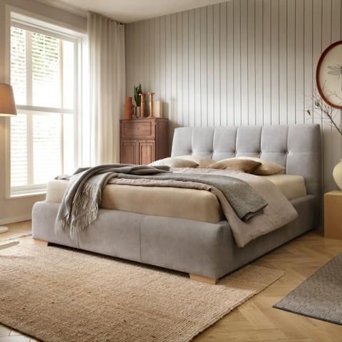 Tapicerowane łóżko Aston Comforteo ze stylowym wezgłowiem dostępnym w dwóch wymiarach do wyboru.