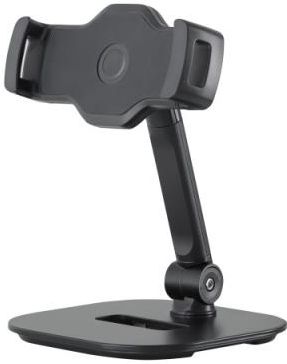 Statyw stołowy do smartfonów i tabletów jest stylowy i funkcjonalny. Uchwyt może pomieścić urządzenia o rozmiarze od 10,2 do 13″. Odpowiada to szerokości mocowania od 130 do 224 mm. Wsporniki i powierzchnia styku są pokryte antypoślizgową gumą, dzięki czemu zapewniają dodatkowe bezpieczeństwo i delikatne trzymanie. Wspornik można indywidualnie i bezstopniowo regulować za pomocą głowicy kulowej. Ramię przedłużające można obracać o 360° i bezstopniowo regulować nachylenie w zakresie od 0 do 150°. Solidna konstrukcja stopy składa się z metalowej płyty i podstawy z 4 antypoślizgowymi nóżkami. Podkonstrukcja posiada również klucz imbusowy i umożliwia wygodne prowadzenie kabli. Wersja: czarna Cecha szczególna: możliwość obracania o 360° Szerokość: od 130 do 224 mm Waga: 1,03 kg Materiał: tworzywo sztuczne, stal Pochylenie: od 0° do 150° Zakres obrotu: 360° Regulacja: bezstopniowa