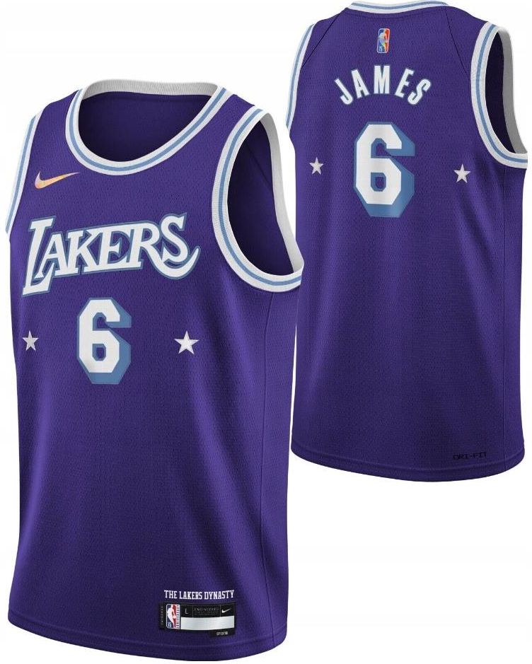 Koszulka NBA Swingman Dri-FIT Nike Lebron James #6 Maillot Nike City Edition Mixtape Los Angeles Lakers 2021-22 DB4032506 L Każda franczyza NBA ma playlistę swoich największych hitów: kompilację kultowych momentów z przeszłości, która śledzi historię zespołu. Koszulka Los Angeles Lakers City Edition 2021-22 łączy w sobie elementy zaczerpnięte z różnych oficjalnych strojów, które na zawsze wpisały się w historię drużyny. Od rozkwitu zespołu w Minneapolis, przez pierwszy tytuł zdobyty w Los Angeles w 1972 roku, po historyczną passę lat 80. City Edition; Swingman; Nazwa i numer Lebron James #6 Technologia Nike Dri-FIT odprowadza pot ze skóry, aby szybciej odparować, zapewniając suchość i wygodę. Dzianina o podwójnym splocie jest miękka i gładka, a na zewnątrz ma siateczkową fakturę. Projekt repliki jest wzorowany na tym, co noszą zawodowcy na parkiecie. Standardowy krój zapewnia swobodę i wygodę Wentylowany dół z obniżonym ogonem Dekolt okrągły i ściągacze przy rękawach Naniesione na ciepło szczegóły drużyny i zawodnika Wyszywane logo i metka Jock 100% poliestru Standardowy krój zapewnia swobodę i wygodę Wymiary mierzone na płasko dla rozmiaru L: długość całkowita: 77 cm szerokość między pachami: 55 cm szerokość na dole: 56 cm szerokość ramion: 38 cm szerokość otworu na rękę: 27 cm Zdjęcia przykładowe: rozmiar i numer seryjny koszulki mogą być inne. Nazwa i grafika zachowana. Podstawowe typy koszulek NBA Koszulki NBA Authentic - są to koszulki oparte na autentycznych krojach, w których występują bądź występowali koszykarze na parkietach NBA. Wykonane dokładnie z tego samego materiału i szyte dokładnie w taki sam sposób. Koszulki NBA Swingman - repliki koszulek w których obecnie bądź niegdyś występowali zawodnicy NBA. Warto wspomnieć o tym, że koszulki Swingman produkowane są na oficjalnej licencji NBA i nie są żadnym rodzajem podróbek. GALERIA ZDJĘĆ PRODUKTU