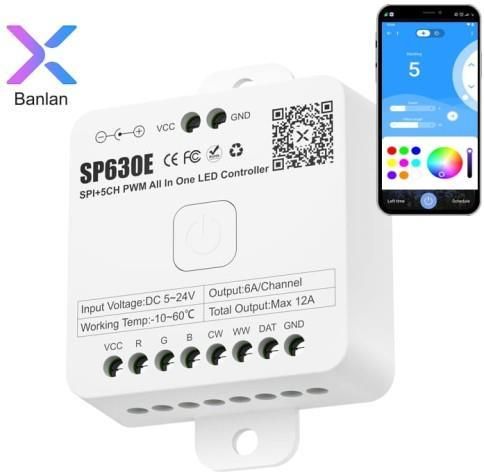 Sterownik do kolorowej taśmy cyfrowej LED RGB sterowany aplikacją lub pilotem. Sterownik Sperll SP630 służy do sterowania cyfrową kolorową taśmą Led RGB na procesorach IC WS2812 oraz WS2811. Sterownik SP630 służy do sterowania taśmami kolorowymi cyfrowymi Led przez aplikację na telefon lub za pomocą pilota RB4 lub panela RC4. Sterownik Led na aplikację BanlanX Sterownik obsługuje cyfrowe taśmy Led z kolorowym światłem RGB, lub wszystkie rodzaje zwykłych taśm LED RGB, RGBW, RGBCCT, CCT. Sterownik posiada wbudowane programy do sterowania pixelami w cyfrowej taśmie Led. Łączność sterownika z telefonem poprzez komunikację Bluetooth, oraz radiowa komunikacja 2.4Hz z pilotem lub panelem sterującym Sterując taśmą Led możesz włączyć płynące światło Led, zmniejszyć lub zwiększyć jasność dla taśmy Led, oraz możesz ustawić różne tryby świecenia według zdefiniowanych scen świetlnych, również możesz ustawić różne harmonogramy czasowe załączania i wyłączania taśmy Led. Podstawowe funkcje sterownika SP630 : sterowanie przez aplikacje BanlanX, sterowanie za pomocą pilota radiowego lub panela na ścianę, cyfrowe kolorowe efekty świetlne, regulacja jasności w taśmie cyfrowej Led, ustawianie przez aplikację harmonogramów czasowych przy załączaniu taśm Led, włączanie i zmiana światła w rytm odtwarzanej muzyki w urządzeniu które steruje odbiornikiem, Podstawowe parametry sterownika SP636: zastosowanie: cyfrowe taśmy LED kolorowe RGB, Napięcie sterownika na wyjściu: od DC5V do DC24V (w zależności o zastosowanych ledów i zasilacza), Moc obciążeniowa sterownika: 12A, Maksymalna obsługiwana długość sekcji cyfrowych w jednym ciągu: 600 sekcji IC Komunikacja odbiornika z urządzeniami: Bluetooth, 2.4Ghz Aplikacja do sterowania urządzeniem: Banlan X, Możliwość sterowanie pilotem: dodatkowo za pomocą pilota RB4 lub RC4 Złącza zasilające: gniazdo DC i złącza śrubowe DC V+,V-, Złącza zasilające sygnałowe na wyjściu: złącza śrubowe V+, V-, DAT, R, G ,B, CW, WW, Wymiary sterownika (dł. x szer. x wys.): 57mm x 57mm x 20mm UWAGA !!! Przedstawiony na zdjęciach telefon jest wyłącznie elementem graficznym poglądowym pokazującym wygląd okna aplikacji. UWAGA !!! Oferta dotyczy wyłącznie samego sterownika bez dodatkowych elementów widocznych na zdjęciach. Opcjonalne dodatkowe wyposażenie takie jak piloty, telefon z aplikacją, bramki WiFi, sterowniki głosowe itp. do kupienia osobno.