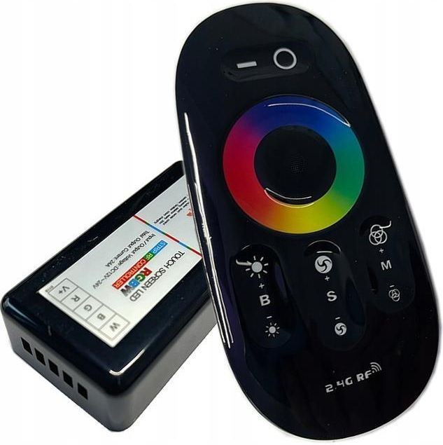 Kontroler, sterownik do taśm LED kolorowych z barwą mono, typ RGBW z radiowym z pilotem RF dotykowym w kolorze czarnym. Przedmiotem oferty jest nowoczesny kontroler sterownik do taśm LED RGBW kolorowych z barwą mono z pilotem dotykowych TOUCH radiowym 2.4GHz w kolorze czarnym. Sterownik służy do zmiany kolorów w taśmie LED RGBW, włączania barwy mono w taśmie RGBW, do włączania i wyłączania taśmy LED, oraz do ściemniania i rozjaśniania światła w taśmie LED. Sterownik ma zaprogramowanych kilka programów tematycznych takich jak STROBE, FLASH, SMOOTH. Sterownik obsługuje kolorowe taśmy LED RGBW na napięcie DC 12V oraz DC 24V. Obciążenie maksymalne sterownika to 18A dla 12V oraz dla 24V czyli (144W dla 12V oraz 244W dla 24V dla kolorów RGB, oraz 72W dla 12V i 144W dla 24V dla światła mono). Zestaw składa się z nowoczesnego małego pilota radiowego w kolorze czarnym, oraz mini odbiornika do sterowania taśmą LED. Radiowa komunikacja pilota z odbiornikiem, ułatwia sterowanie i powoduje że nie trzeba celować pilotem bezpośrednio w odbiornik, a odbiornik może być schowany w szafce, w suficie itp. Odbiornik posiada na wejściu od zasilacza, wejście na wtyk DC 2.1/2.2 lub złącze śrubowe zaciskowe V+ i V-, oraz na wyjściu do taśmy LED złącze śrubowe zaciskowe V+, R, G, B. Parametry techniczne: Sterownik: max. moc obciążenia na wyjściu: światło RGB144W dla 12V, 288W dla 24V, światło mono 72W dla 12V i 144W dla 24V, max. obciążenie prądowe na wyjściu: 18A, napięcie na wyjściu: DC12V lub DC24V, typ napięcia na wyjściu: DC - stałe, łączność z pilotem: Radiowa RF - 2.4Ghz, gniazdo zasilające: DC 2.1/5.5 oraz śrubowe V+ i V-, gniazdo na wyjściu taśmy LED: śrubowe V+,R,G,B, zakres temperatury pracy: -15°C ÷ +55°C, klasa szczelności: IP40 wymiary sterownika: 85mm x 45m x 23mm Pilot: ilość przycisków: 9, łączność ze sterownikiem: radiowa 2.4 GHz, zasięg łączności: max. 15 m ilość zdefiniowanych kolorów: 20 RGB, przejście w tryb MONO, ilość programów dynamicznych: 6, szybki dostęp do wybranych kolorów: touch ring RGB, Smooth - miękkie przejścia między kolorami, Fade - płynne przejścia między kolorami, Strobe - szybkie migotanie koloru, Flash - skokowa zmienna kolorów, funkcja pamięci ostatniego trybu ustawienia funkcja ściemniania i rozjaśniania: tak, zakres 0-100%, zasilanie: bateria CR25 (brak w zestawie), wymiary pilot: 110mm x 53mm x 23mm, Na innych aukcjach pozostałe modele kontrolerów LED. Dlaczego warto wybrać naszą ofertę: na rynku oświetleniowym od ponad 10 lat, sprawdzone produkty i sprawdzeni dostawcy, prawdziwe wartości i rzetelne parametry produktów (bez ściemy i bajek), najwyższe zadowolenie klientów (opinie Google), zaufanie renomowanych odbiorców, firma ze sklepami stacjonarnymi, nie twór typowo internetowy, doświadczenie i fachowe doradztwo, oferujemy własny serwis wraz z usługami dodatkowymi (nie tylko zwykła sprzedaż bez wsparcia), W naszej ofercie znajdziesz dodatkowe produkty do taśmy LED: taśmy LED: standard, premium i profesjonalne na 12V i 24V, zwykłe, wodoodporne i wodoszczelne, zasilacze LED: montażowe, meblowe, hermetyczne, gniazdkowe i na szynę DIN, profile i listwy do taśm LED: meblowe, podłogowe, architektoniczne, wpuszczane, nawierzchniowe, kątowe i okrągłe, sterowniki LED: RGB, RGBW, MONO, CCT na łączność IR, RF i WiFi oraz kontrolery SmartHome, włączniki LED: włączniki meblowe do profili, włączniki do szafek, włączniki podblatowe, czujki zbliżeniowe, czujki ruchu, przewody i złączki do taśm LED