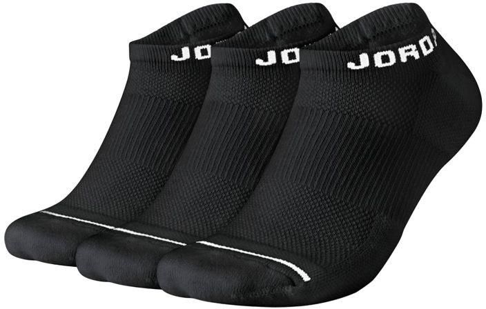 Nike Jordan Everyday Max No-Show Właściwości: * skarpety męskie * trzy pary * wykonane w technologii DRI-FIT / oddające pot na zewnątrz * skład : 96% poliester 3% elastan 1% nylon * kolor : czarny Skarpety uniseks Jordan Jumpman No-Show są wykonane w technologii odprowadzania wilgoci. Zastosowano w nich siateczkowe wstawki i wsparcie łuku stopy, dzięki czemu zapewniają przewiewność, wygodę oraz doskonałe dopasowanie. Obszary wokół palców i pięty zostały wzmocnione, dzięki czemu gwarantują trwałość i ochronę przed wstrząsami. Technologia Dri-FIT zapewnia suchość i wygodę. Profilowana lewa i prawa stopa zapewniają lepsze dopasowanie. Pięta i palce zostały wzmocnione dla zapewnienia większej trwałości. Wsparcie łuku stopy odpowiada za wygodne i doskonałe dopasowanie.