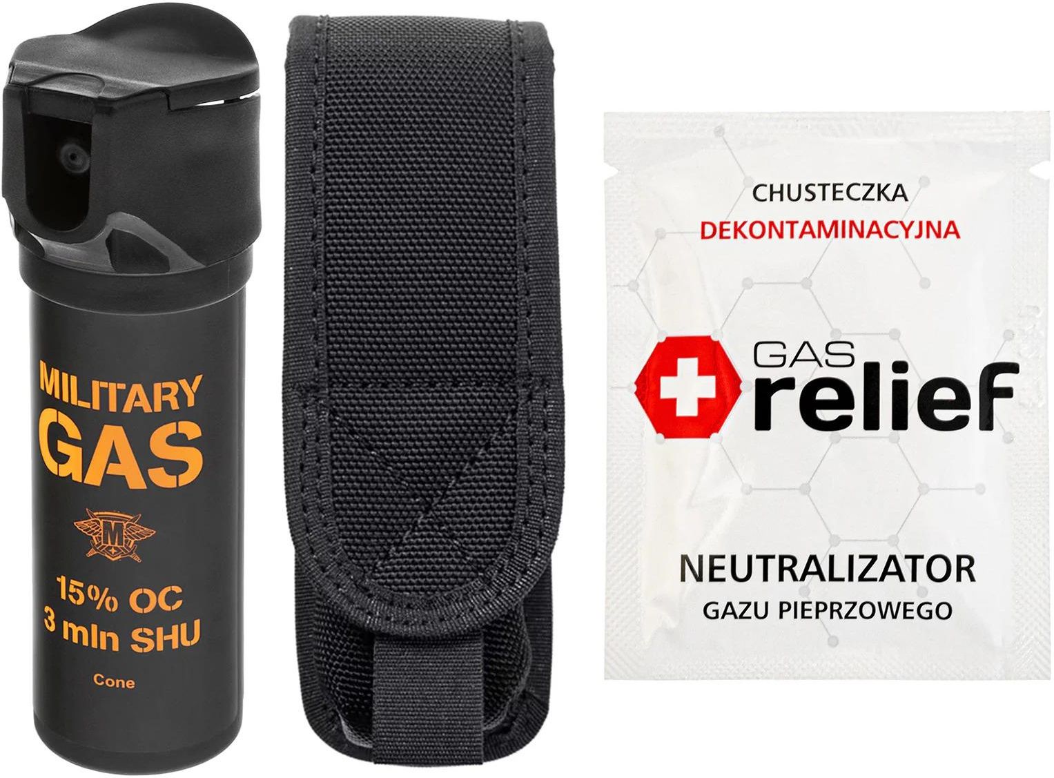 Tm Gaz Pieprzowy Military Gas 75ml Stożek + Chusteczka Neutralizująca Gas Relief + Kabura Zestaw Dzierżoniów