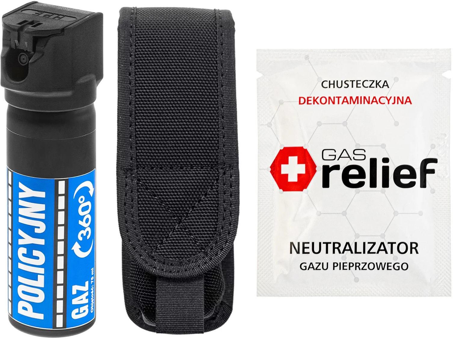 Tm Gaz Pieprzowy Policyjny 360 75ml Strumień + Chusteczka Neutralizująca Gas Relief + Kabura Zestaw Dzierżoniów
