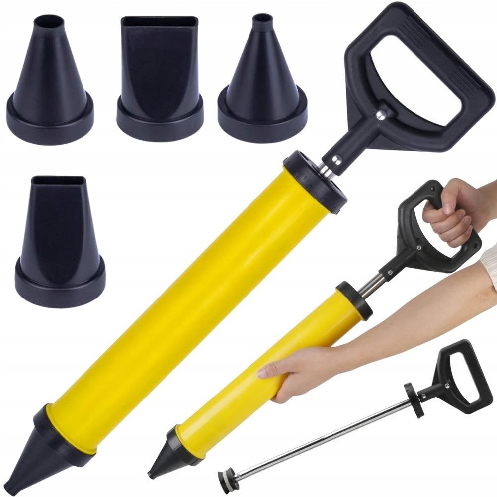 WYCISKACZ BUDOWLANY POMPKA DO MAS CEMENTU TYNKU ZAPRAWY KLEJU FUG 4 DYSZE WYCIŚNIJ DOKŁADNIE TO, CO POTRZEBUJESZ – WYCIKACZ DO ZAPRAW Z 4 DYSZAMI Profesjonalny wyciskacz budowlany to niezastąpione narzędzie do aplikacji cementu, kleju, zaprawy, tynku oraz fug. Dzięki solidnej konstrukcji z wytrzymałych materiałów oraz ergonomicznemu uchwytowi zapewnia wygodną i precyzyjną pracę nawet w trudno dostępnych miejscach. Ręczna pompka działa na zasadzie zasysania i wypychania mieszanki – wystarczy napełnić ją zaprawą, założyć odpowiednią końcówkę i rozpocząć dozowanie. Idealna alternatywa dla tradycyjnych kielni i szpachli. ? 4 RÓŻNE DYSZE – IDEALNE DOPASOWANIE DO KAŻDEJ PRACY W zestawie znajdują się aż 4 wymienne końcówki o różnych kształtach i średnicach – okrągłe, stożkowe i spłaszczone – które umożliwiają precyzyjne wyciskanie zaprawy w spoiny, szczeliny, narożniki czy pod kafelki. Szybka wymiana dyszy sprawia, że możesz z łatwością dostosować narzędzie do rodzaju wykonywanej pracy. ZALETY PRODUKTU Prosta i szybka aplikacja zapraw, fug i tynków Możliwość dokładnego nakładania bez rozchlapywania Oszczędność materiału i czasu Łatwa obsługa i czyszczenie po pracy Wytrzymała konstrukcja odporna na uszkodzenia mechaniczne SPECYFIKACJA TECHNICZNA Kod produktu: 11505 Wielokrotnego użytku 4 wymienne dysze Wymiary: 61cm x 14cm Kolor: żółty ZESTAW ZAWIERA Wyciskacz do betonu 4 końcówki Oryginalne opakowanie
