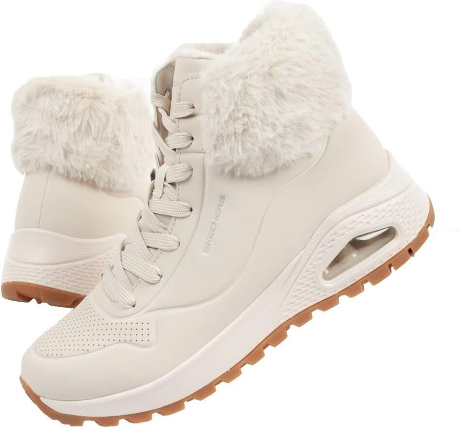 Buty Skechers Uno Rugged W 167274/OFWT Właściwości Damskie buty sportowe marki Skechers. Cholewka wykonana z najwyższej jakości gładkiej profilowanej skóry syntetycznej Durabuck. Wysoki, ocieplany kołnierz dodaje uroku stylizacji. Wnętrze obuwia wyściełane miłym polarem. Wkładanie i zdejmowanie obuwia ułatwia zapięcie na zamek. Klasyczny system sznurowania zapewnia doskonałe dopasowanie obuwia do stopy. Komfortowa wkładka Skechers Air-Cooled Memory Foam. Podeszwa środkowa z widoczną poduszką powietrzną Skech-Air. Antypoślizgowa, elastyczna podeszwa zewnętrzna zapewniająca przyczepność. Idealne obuwie do każdej jesienno - zimowej stylizacji. Kolor beżowy