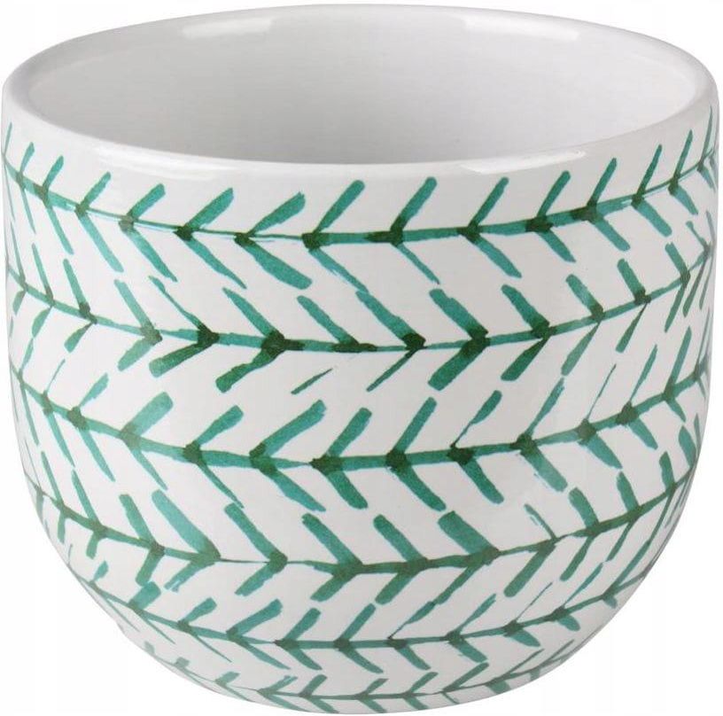 Osłonka Doniczki Ceramiczna 14cm Zielono-Biała Ma Dziwnów