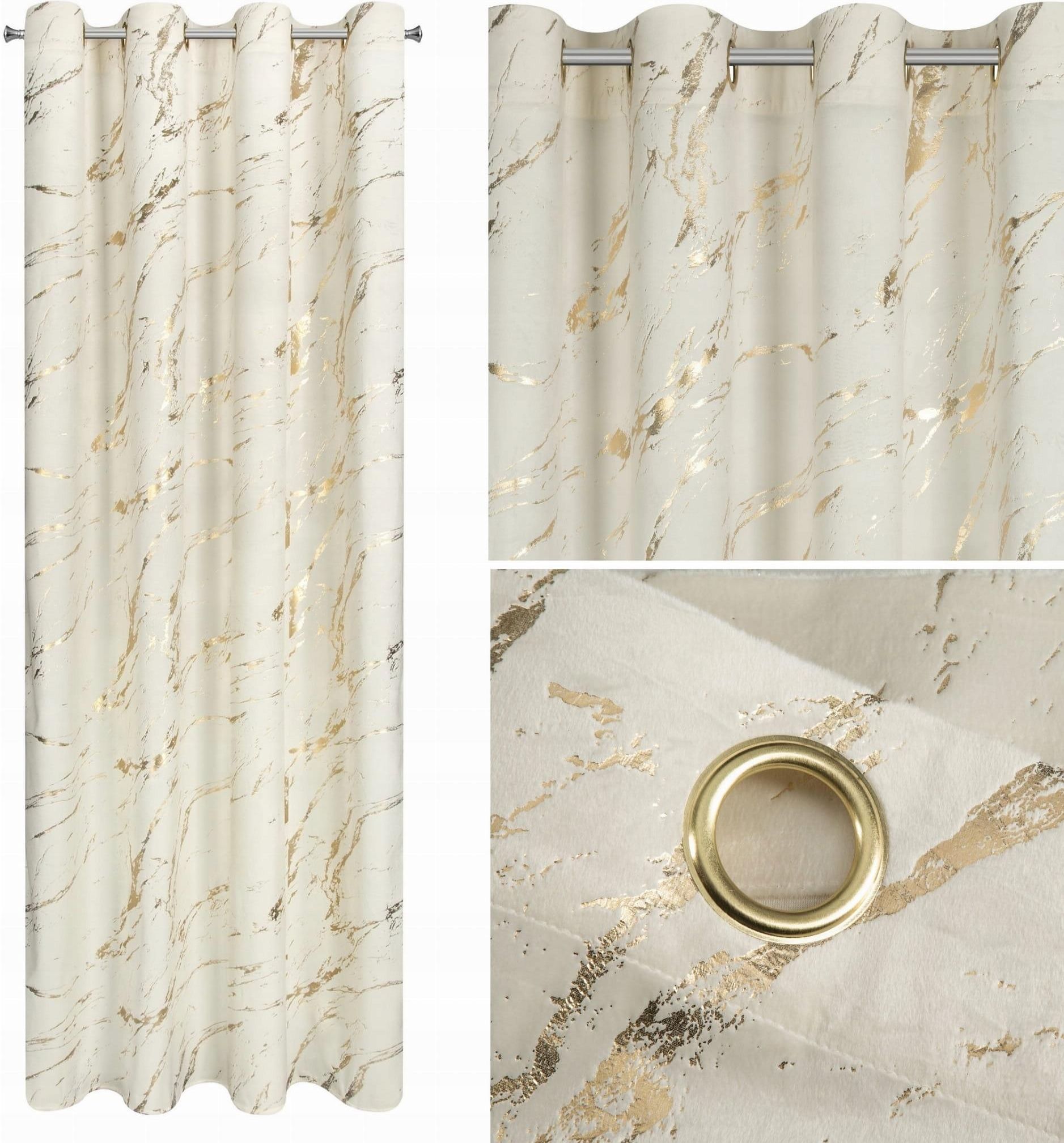 Zasłona welurowa 140x250 krem szampan na przelotkach Eurofirany OPIS PRODUKTU Wprowadź do swojego wnętrza szyk i elegancję dzięki welwetowym zasłonom z delikatnym złotym wzorem. Zasłona MOLLY w odcieniu krem + szampan to połączenie elegancji i nowoczesności. Jej piękny, marmurkowy nadruk na …