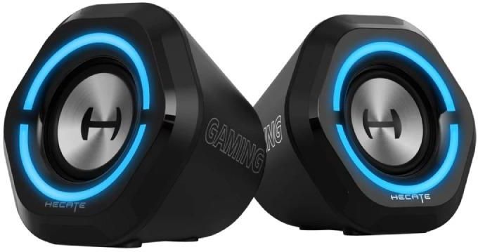 Edifier Hecate G1000 II Głośniki Komputerowe Gamingowe BT 5.4 USB RGB 4W Edifier G1000 II to głośniki stworzone specjalnie z myślą o graczach i użytkownikach komputerów stacjonarnych, którzy szukają wydajnego sprzętu o gamingowym charakterze. Niewielkie wymiary sprawiają, że idealnie sprawdzają się na małych biurkach, nie zajmując wiele miejsca, a jednocześnie oferują brzmienie, które potrafi zaskoczyć głębią i mocą. Charakterystyczna, futurystyczna obudowa z 9 trybami podświetlenia RGB przyciąga wzrok i dobrze komponuje się zarówno z gamingowym zestawem, jak i minimalistycznym stanowiskiem. Specyfikacja Producent: Edifier Model: Hecate G1000 Kolor: czarny Impedancja: 3 Ω Moc wyjściowa RMS: 2W + 2 W Wersja Bluetooth: 5.4 Długość kabla: 1.5 m Pasmo przenoszenia: 88 Hz - 19 kHz Wymiary: 102 x 92 x 120 mm Zalety Mocny i czysty dźwięk: 2,5-calowy przetwornik pełnozakresowy z 16-rdzeniowym systemem magnetycznym zapewnia precyzyjne brzmienie i głęboki bas dzięki portowi bass reflex. 3 tryby EQ – Music, Gaming, Movie: Dopasuj charakter dźwięku do sytuacji i ciesz się najlepszymi wrażeniami w grach, filmach i muzyce. Wszechstronna łączność:Bluetooth 5.4, USB i AUX gwarantują kompatybilność z komputerami, konsolami i urządzeniami mobilnymi. Styl i funkcjonalność:9 trybów podświetlenia RGB, ergonomiczne przyciski oraz aplikacja Edifier ConneX umożliwiają wygodne sterowanie i personalizację. W zestawie głośniki kabel AUX adapter USB-A do USB-C instrukcja obsługi Dźwięk, który robi różnicę Serce głośnika stanowi 2,5-calowy przetwornik pełnozakresowy, który pracuje w oparciu o 16-rdzeniowy system magnetyczny. Takie rozwiązanie przekłada się na większą precyzję dźwięku, lepszą kontrolę nad tonami i mniejsze zniekształcenia. Dodatkowo zastosowany w obudowie port bass reflex o wydłużonym, eliptycznym kształcie pozwala uzyskać głębszy i bardziej kierunkowy bas. Efekt? Niskie tony są wyraźniejsze i lepiej rozchodzą się w przestrzeni. Tryby EQ dopasowane do sytuacji Edifier G1000 II oferuje trzy dedykowane tryby dźwiękowe: Music, Gaming oraz Movie. Każdy z nich został specjalnie dostrojony, by jak najlepiej odpowiadać na potrzeby różnych scenariuszy. Niezależnie, czy grasz, słuchasz muzyki lub oglądasz serial, możesz liczyć na zoptymalizowane ustawienia, które wydobędą z nagrań to, co najlepsze. Kilka sposobów połączenia Głośniki zostały wyposażone w trzy sposoby łączności: Bluetooth 5.4, AUX oraz USB. Dzięki temu możesz je z łatwością połączyć z niemal każdym urządzeniem – niezależnie od tego, czy korzystasz ze smartfona, tabletu, laptopa, komputera stacjonarnego, czy konsoli. Sterowanie i personalizacja Wygoda użytkowania to kolejna mocna strona G1000 II. Na górze obudowy umieszczono przyciski silikonowe, dzięki którym przełączanie trybów, regulacja ustawień czy zmiana źródła dźwięku nie sprawiają problemu. Możesz również korzystać z aplikacji Edifier ConneX , która oferuje dodatkowe możliwości konfiguracji – od zmiany trybów EQ, przez przełączanie wejść, aż po ustawienia efektów świetlnych. Przemyślana konstrukcja W projekcie obudowy zadbano o każdy detal. Delikatne pochylenie konstrukcji o 10 stopni poprawia kierunkowość dźwięku i redukuje jego odbicia od biurka, co pozytywnie wpływa na słyszalność wysokich tonów. Przezroczysta pokrywa z efektem lustrzanego tłoczenia nadaje futurystycznego wyglądu, a gumowe, antypoślizgowe podkładki gwarantują stabilność.
