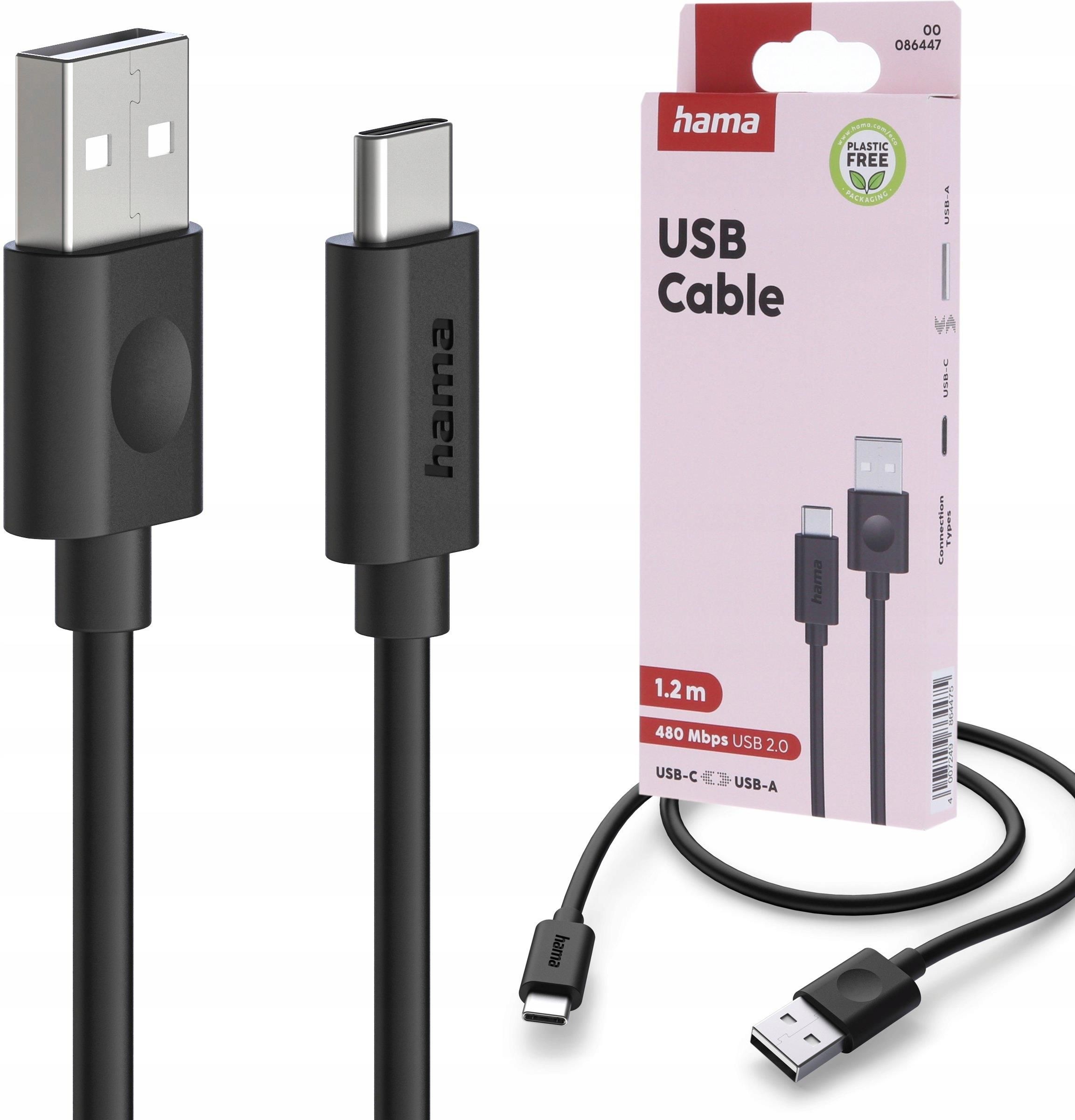 86447 HAMA KABEL USB-A - USB-C 60W 1,2M, CZARNY Szybkie ładowanie i pewne połączenie – Hama kabel USB-C 1,2 m Funkcjonalność Funkcja szybkiego ładowania – maksymalna prędkość ładowania urządzeń mobilnych Uniwersalne zastosowanie – kompatybilny z wszystkimi urządzeniami USB-C Szybka transmisja danych – do 480 Mbit/s dla sprawnego przesyłu plików Dwukierunkowe przesyłanie sygnału – ładowanie i transfer w obu kierunkach Wysokiej jakości materiał PVC gwarantuje trwałość i elastyczność przewodu Długość 1,2 m zapewnia swobodę użytkowania w domu, biurze i podróży Złącza USB Type-A oraz USB-C – szeroka kompatybilność z urządzeniami Solidne wykonanie Hama – niezawodność i stabilność połączenia Szybkie ładowanie bez ograniczeń Hama kabel USB-C umożliwia błyskawiczne ładowanie telefonu w połączeniu z ładowarką szybkiego ładowania. Zapewnia maksymalną wydajność energetyczną, co pozwala na szybkie uzupełnienie baterii bez przegrzewania urządzenia. Uniwersalna kompatybilność Kabel współpracuje ze wszystkimi smartfonami, tabletami i innymi urządzeniami wyposażonymi w port USB-C. Dzięki złączom USB Type-A i USB-C możesz go używać z ładowarkami, komputerami, powerbankami czy stacjami dokującymi. Szybki transfer danych Hama kabel gwarantuje przesył danych z prędkością do 480 Mbit/s. Umożliwia błyskawiczne kopiowanie zdjęć, filmów i dokumentów między urządzeniami, zapewniając stabilne połączenie i wysoką niezawodność transmisji. Trwałość i wygoda użytkowania Przewód o długości 1,2 m wykonano z wytrzymałego PVC, odpornego na zginanie i przetarcia. Dzięki elastycznej konstrukcji kabel nie plącze się i doskonale sprawdza się zarówno w codziennym użytkowaniu, jak i w podróży. Specyfikacja techniczna Produkt: Hama kabel USB-C Kolor: czarny Długość: 1,2 m Materiał: PVC Połączenia: USB Type-A / USB-C Standard: USB 2.0 Maksymalna prędkość transmisji danych: 480 Mbit/s Kierunek sygnału: dwukierunkowy (bidirectional) Funkcja: szybkie ładowanie (Quick Charge) Zastosowanie: smartfony, tablety, urządzenia z USB-C