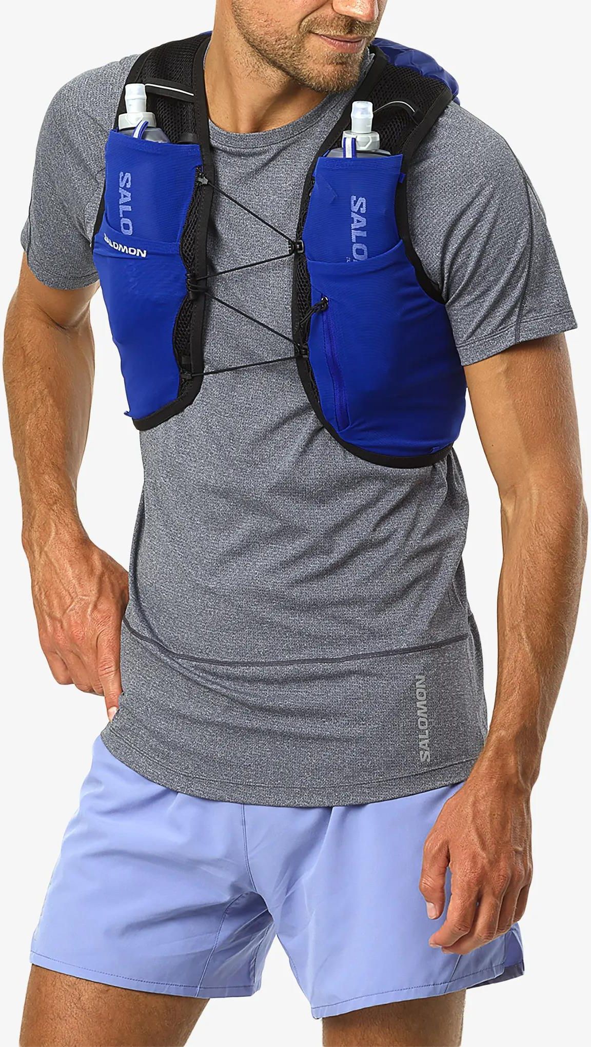 Plecak Kamizelka do biegania z bidonami ACTIVE SKIN 8 SET - obszerna kamizelka z systemem nawadniania. Pozwala pewnie poczuć się podczas dłuższych przygód na szlaku.