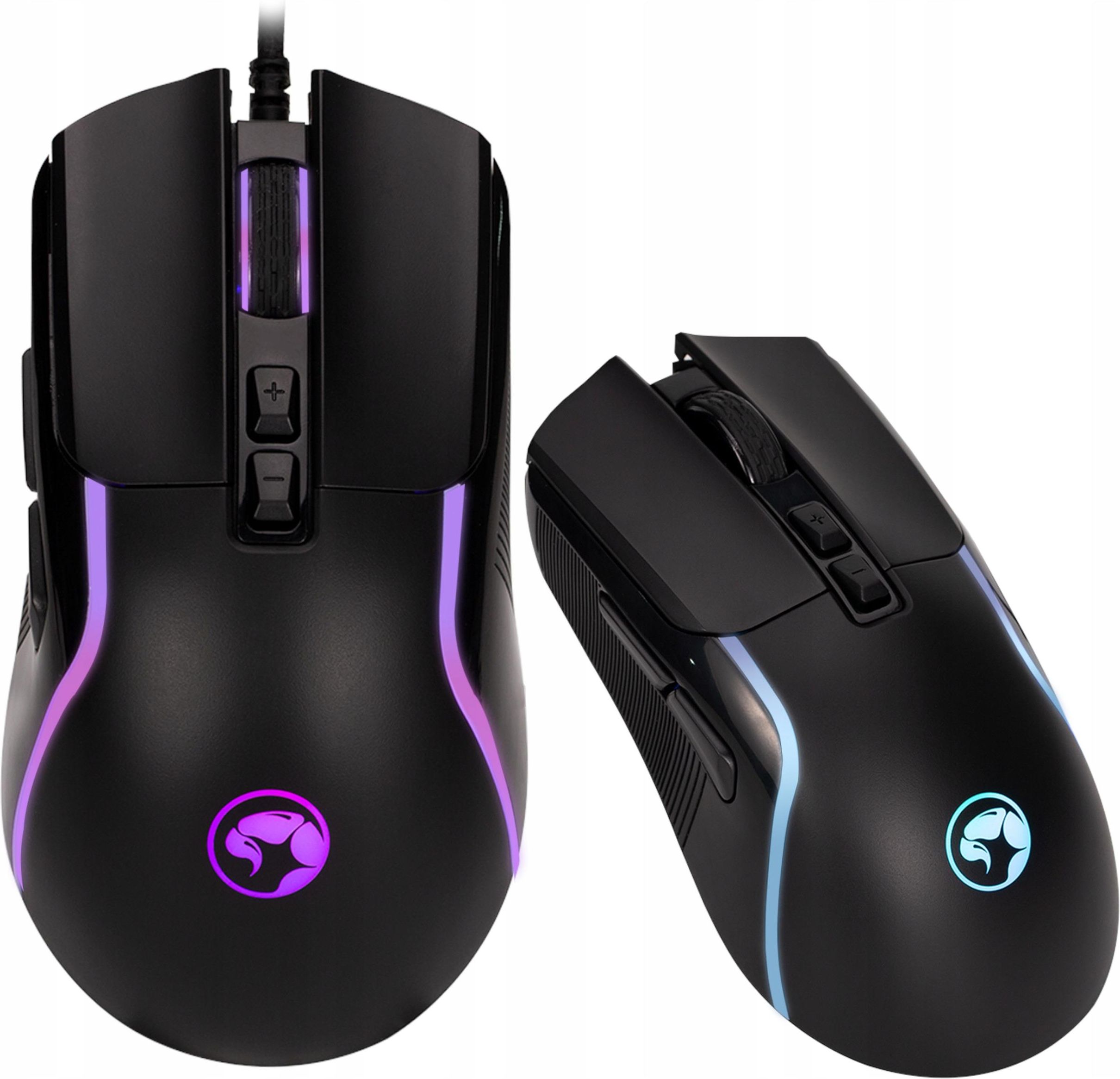 Marvo CAPO 20 – Profesjonalna mysz dla graczStworzona dla zwycięzców Marvo CAPO 20 to zaawansowana mysz stworzona z myślą o graczach, którzy oczekują od swojego sprzętu nie tylko niezawodności, ale też precyzji, szybkiej reakcji oraz wysokiej wytrzymałości. Dzięki zastosowaniu sprawdzonego sensora optycznego i ergonomicznej konstrukcji, urządzenie gwarantuje komfort nawet podczas wielogodzinnych sesji gamingowych. Stylowe podświetlenie RGB w 7 kolorach dopełnia gamingowy charakter myszki, czyniąc ją nie tylko funkcjonalnym, ale też atrakcyjnym wizualnie elementem zestawu gracza. Funkcjonalność bez kompromisów 7 programowalnych przycisków: zapewniają szerokie możliwości personalizacji i kontroli nad grą – bez potrzeby instalowania dodatkowego oprogramowania. Szybka reakcja i precyzja: mysz działa natychmiast po podłączeniu do komputera, oferując wysoką dokładność dzięki czułemu sensorowi optycznemu. Rainbow podświetlenie: dynamiczne efekty świetlne można dopasować do własnych preferencji lub atmosfery gry. Niezrównana precyzja i dopasowanie do stylu gry Wyposażona w sensor optyczny 603FP, Marvo CAPO 20 oferuje płynne i dokładne śledzenie ruchu bez opóźnień. Użytkownik może dostosować poziom DPI w zakresie od 1200 do 8000, co pozwala precyzyjnie dopasować czułość do wymagań konkretnej gry czy indywidualnych preferencji. Przełączanie DPI odbywa się bezpośrednio z poziomu myszki, bez konieczności przerywania rozgrywki. Wytrzymałość na najwyższym poziomie Zastosowane przełączniki Huanor o żywotności do 3 milionów kliknięć gwarantują długą i bezawaryjną eksploatację. CAPO 20 to idealne rozwiązanie zarówno dla graczy rekreacyjnych, jak i bardziej wymagających entuzjastów esportu. Pewny chwyt i komfort użytkowania Boczne ścianki myszki pokryto strukturalną, antypoślizgową powierzchnią, co zapewnia pewny chwyt nawet podczas dynamicznej rozgrywki. Dodatkowo gumowe wykończenie scrolla ułatwia precyzyjne przewijanie oraz szybką zmianę broni czy narzędzi w grze. Specyfikacja techniczna Sensor: optyczny 603FP Liczba przycisków: 7 Zakres DPI: 1200 / 1800 / 2400 / 3200 / 4800 / 8000 DPI – możliwość zmiany: tak Częstotliwość odświeżania (polling rate): 125 Hz Podświetlenie: 7 kolorów, rainbow z efektami świetlnymi Żywotność przełączników: do 3 milionów kliknięć (Huanor) Zasilanie: 5V / 50 mA Waga: 78 g Wymiary: 127 × 68 × 40 mm Długość przewodu USB: 1,5 m Interfejs: USB Kompatybilność: Windows 7 i nowsze Wymagane oprogramowanie: brak – plug & play
