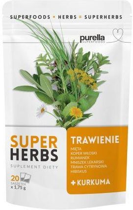 Purella Mieszanka ziół na trawienie 20 x 1,75 g idealne uzupełnienie codziennej diety zawiera mieszankę naturalnych ziół dla osób lubiących naturalne rozwiązania poręczna forma 20 porcji Purella Mieszanka ziół na trawienie 20 x 1,75 g to wyjątkowy produkt stworzony z myślą o wspieraniu samopoczucia w naturalny sposób. Zawiera specjalnie wyselekcjonowaną mieszankę ziół, w tym ziele mięty, owoc kopru, kwiat hibiskusa oraz ziele trway cytrnowej. Produkt Purella jest całkowicie naturalny i nie zawiera żadnych sztucznych dodatków, barwników czy wypełniaczy. Wszystkie składniki pochodzą z kontrolowanych upraw ekologicznych, co gwarantuje ich wysoką jakość i czystość. Taka staranność w selekcji składników sprawia, że mieszanka ziół na oczyszczanie jest nie tylko skuteczna, ale również bezpieczna dla zdrowia, nawet przy dłuższym stosowaniu. Podsumowując, Purella Mieszanka ziół na trawienie 20 x 1,75 g to doskonały wybór dla osób szukających naturalnego wsparcia samopoczucia. W pełni naturalny skład bez szkodliwych dodatków czyni ją bezpiecznym i skutecznym produktem. Skład: Składnik - Porcja 1,75 g (%RWS) Ziele mięty (Menthae piperitae herba) - 400 mg (-) Owoc kopru (Foeniculi vulgaris fructus) - 270 mg (-) Ziele melisy (Mellisae officinalis herba) - 250 mg (-) Koszyczek rumianku (Matricariae chamomillae anthodium) - 250 mg (-) Kwiat hibiskusa (Hibisci sabdariffae flos) - 200 mg (-) Korzeń mniszka (Taraxaci officinalis radix) - 140 mg (-) Ziele trawy cytrynowej (Cymbopogon citratus herba) - 110 mg (-) Liść zielonej herbaty (Cameliae sinensis herba folium) - 90 mg (-) Kłącze ostryżu (kurkuma) (Curcumae longae rhizoma) - 40 mg (-) Ziele mięty pieprzowej, owoc kopru włoskiego, ziele melisy lekarskiej, koszyczek rumianku pospolitego, kwiat hibiskusa (ketmii szczawiowej), korzeń mniszka lekarskiego, ziele trawy cytrynowa, liść zielonej herbaty, kłącze ostryżu długiego (kurkuma). Sposób użycia 1 saszetkę (1,75 g) zalać 200 ml wrzącej wody. Parzyć pod przykryciem 3-5 minut. Pić po ostygnięciu małymi łykami. Stosować 2 razy dziennie, w trakcie dnia do godz. 18. Nie należy przekraczać porcji dziennej wynoszącej 3,5 g produktu. Przeciwwskazania Produkt nie może być stosowany jako substytut zróżnicowanej diety. Zrównoważony sposób żywienia oraz zdrowy tryb życia są podstawą prawidłowego funkcjonowania organizmu. Nie należy przekraczać zalecanej porcji do spożycia w ciągu dnia. W przypadku stosowania leków lub innych suplementów diety należy skonsultować z lekarzem. Przechowywanie Przechowywać w temperaturze pokojowej. Chronić przed wilgocią. Przechowywać w sposób niedostępny dla małych dzieci. SKU: 5903246562729 Wiemy jak ważne jest prawidłowe przechowywanie suplementów diety. Wszystkie nasze produkty przechowywane są w profesjonalnych magazynach spełniających wymogi dla aptek. Stale monitorujemy wilgotność, temperaturę i inne parametry. Kupując na naszych aukcjach masz pewność, że produkty są przechowywane według ustalonych dla nich wymagań jakościowych i zasad bezpieczeństwa przechowywania. Wszystkie teksty na aukcjach są naszego autorstwa. Zgodnie z Ustawą z dnia 4 lutego 1994 r. o prawie autorskim i prawach pokrewnych (Dz. U. z 2006 r. Nr 90, poz. 631 z późn. zm.) kopiowanie całości lub części opisu oraz rozpowszechnianie zabronione pod groźbą kary finansowej!