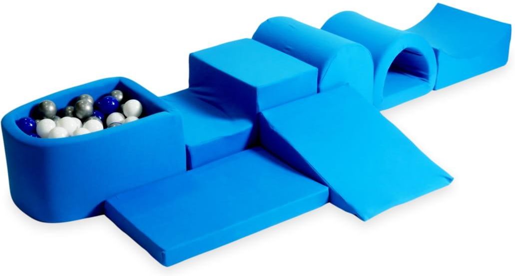 Największy piankowy plac zabaw z basenem micro niebieski + 100 piłek: niebieski, srebrny, biały Mimii: Największy piankowy plac zabaw z basenem micro niebieski + 100 piłek: niebieski, srebrny, biały) Piankowy plac zabaw lub jak inaczej nazywany jest - piankowy tor przeszkód to niezwykła frajda dla Twojego malucha. Właściwości: Pozytywnie wpływa na rozwój dziecka Idealnie nadaje się do zabawy: Tylko pod opieką osoby dorosłej) Niezwykła zabawa od pierwszych miesięcy życia Świetnie nadaje się na prezent! Dane techniczne: W całości wykonany z pianki Pokryty pokrowcem wykonanym z przyjemnej w dotyku tkaniny [95% bawełna, 5% elastan] Posiada certyfikat CE oraz certyfikat EN-71 Pokrowiec na zamek, zdejmowany do prania: prać w temperaturze 30 stopni Celsjusza) Produkty pakujemy próżniowo, aby zredukować wielkość paczek.: Po rozpakowaniu produkty potrzebują około 7 dni na osiągnięcie właściwego kształtu) Wymiary elementów: szerokość / długość / wysokość): Schodek: 45/60/30 cm Kołyska: 45/50/30 cm Klin: 45/60/20 cm Górka: 45/30/35 cm Mostek: 45/40/30 cm Mata: 45/65/6 cm Basen micro: 45/60/30 cm Plastikowe piłeczki do suchego basenu polski producent wykonane z nietoksycznego materiału, bezpieczne dla dzieci bardzo elastyczne, nie ulegają odkształceniu posiadają certyfikat CE średnica piłeczek 7 cm Robimy krok w stronę ekologii! Jako jedni z nielicznych producentów zabawek piankowych wykorzystujemy piankę o podwyższonej gęstości. Dzięki temu, produkty z niej wykonane będą znacznie trwalsze, a co za tym idzie - będą dłużej służyły swoim małym właścicielom! Produkty pakujemy próżniowo, redukujemy dzięki temu wielkość paczek, a to z kolei bezpośrednio przekłada się na wiele korzyści. Dzięki zmniejszaniu wymiarów paczek, zredukowaliśmy również ilość ciężarówek potrzebnych do ich przewiezienia. Do jednej dziennie! Wszystkie kroki, które podjęliśmy przekładają się na mniejsze spalanie paliwa oraz mniejsze zanieczyszczanie środowiska. Uwaga! Kolory produktów mogą nieznacznie różnić się od tych widocznych na zdjęciach z powodu ustawień ekranu.