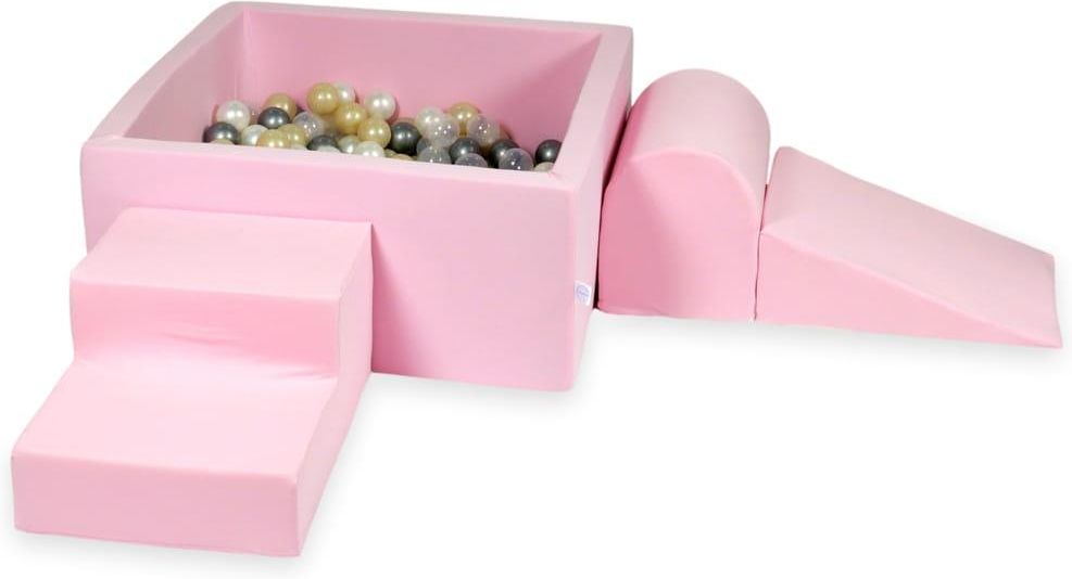 Mimii: Piankowy plac zabaw z basenem kwadratowym 90x90x40 pudrowy róż + 400 piłek: jasne złoto, perła, srebrne, przezroczyste)Piankowy plac zabaw lub jak inaczej nazywany jest - piankowy tor przeszkód to niezwykła frajda dla Twojego malucha. Właściwości: Pozytywnie wpływa na rozwój dziecka Idealnie nadaje się do zabawy: Tylko pod opieką osoby dorosłej) Niezwykła zabawa od pierwszych miesięcy życia Świetnie nadaje się na prezent!Dane techniczne: W całości wykonany z pianki Pokryty pokrowcem wykonanym z przyjemnej w dotyku tkaniny [95% bawełna, 5% elastan] Posiada certyfikat CE oraz certyfikat EN-71 Pokrowiec na zamek, zdejmowany do prania: prać w temperaturze 30 stopni Celsjusza) Produkty pakujemy próżniowo, aby zredukować wielkość paczek.: Po rozpakowaniu produkty potrzebują około 7 dni na osiągnięcie właściwego kształtu)Wymiary elementów: szerokość / długość / wysokość): Schodek: 45/60/30 cm Klin: 45/60/20 cm Górka: 45/30/35 cm Basen kwadratowy: 90x90x40Plastikowe piłeczki do suchego basenu polski producent wykonane z nietoksycznego materiału, bezpieczne dla dzieci bardzo elastyczne, nie ulegają odkształceniu posiadają certyfikat CE średnica piłeczek 7 cmPole 'Plik' Możesz skorzystać z pola 'Plik' oraz załadować plik tekstowy lub graficzny, jeśli chcesz aby wewnątrz paczki znajdowała się wydrukowana kartka z informacją. Mogą to być życzenia lub informacja od kogo jest to prezent. Decyzję zostawiamy Tobie!: Załączanie plików nie jest obowiązkowe) Robimy krok w stronę ekologii! Jako jedni z nielicznych producentów zabawek piankowych wykorzystujemy piankę o podwyższonej gęstości. Dzięki temu, produkty z niej wykonane będą znacznie trwalsze, a co za tym idzie - będą dłużej służyły swoim małym właścicielom! Produkty pakujemy próżniowo, redukujemy dzięki temu wielkość paczek, a to z kolei bezpośrednio przekłada się na wiele korzyści. Dzięki zmniejszaniu wymiarów paczek, zredukowaliśmy również ilość ciężarówek potrzebnych do ich przewiezienia. Do jednej dziennie! Wszystkie kroki, które podjęliśmy przekładają się na mniejsze spalanie paliwa oraz mniejsze zanieczyszczanie środowiska. Uwaga! Kolory produktów mogą nieznacznie różnić się od tych widocznych na zdjęciach z powodu ustawień ekranu.