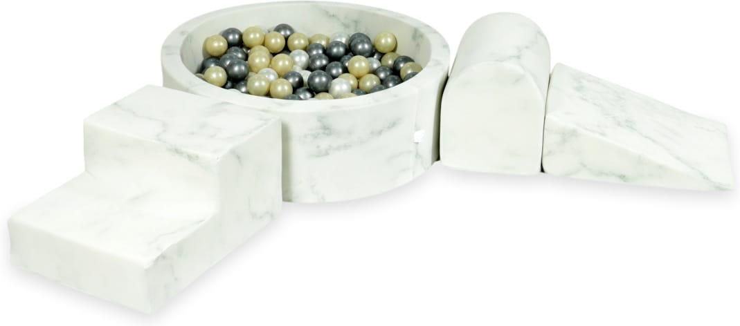 Piankowy plac zabaw z basenem okrągłym 90x30 marmur + 200 piłek: jasne złoto, perła, srebrne Mimii: Piankowy plac zabaw z basenem okrągłym 90x30 marmur + 200 piłek: jasne złoto, perła, srebrne) Piankowy plac zabaw lub jak inaczej nazywany jest - piankowy tor przeszkód to niezwykła frajda dla …