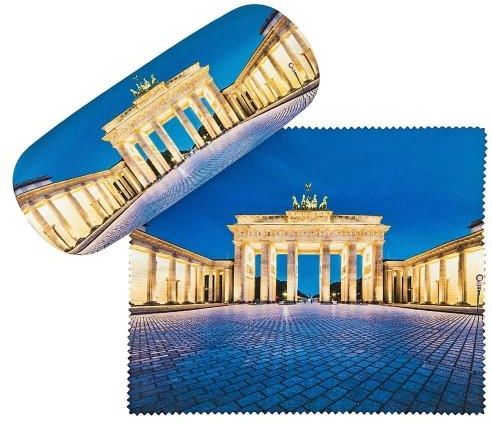 Wysokiej jakości elegancki futerał na okulary z oryginalnym motywem. Wzór: piękny widok na Bramę Brandenburską - zabytkową budowlę w Berlinie. Etui jest wytrzymałe, twarde, pokryte mikrowłóknem. Do futerału dołączona jest ściereczka do czyszczenia okularów wykonana z mikrofibry, z takim samym motywem, jak na etui. Wymiary ściereczki: 18 x 14,5 cm. Wewnątrz futerału znajduje się wytłoczone logo Von Lilienfeld w kolorze srebrnym metalicznym. Obudowa jest misternie wyściełana welurem. Wymiary zewnętrzne etui: 16 x 6,5 x 4,5 cm (odpowiednie dla okularów normalnej wielkości).