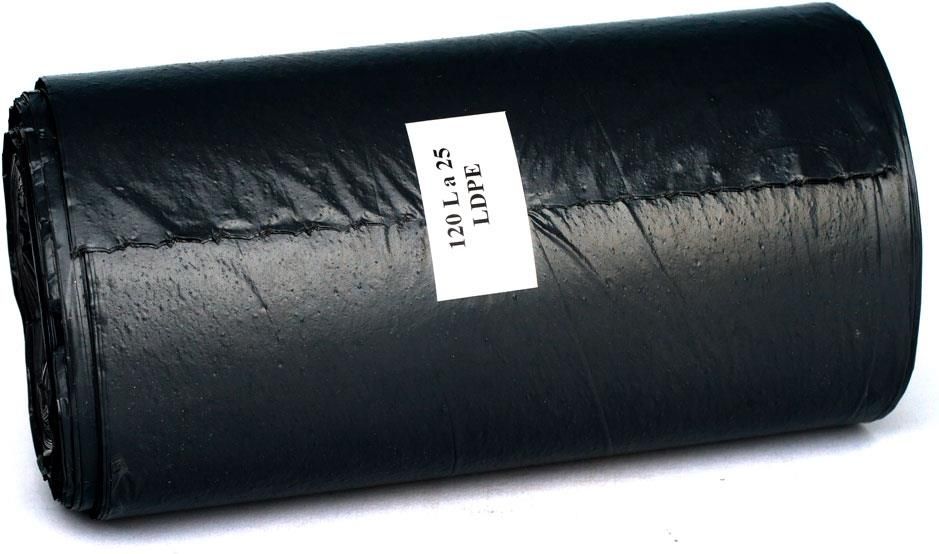 Ekosell worki na odpady o pojemności 120 litrów, 25 sztuk na rolce, kolor czarny. Klasa folii LDPE.
