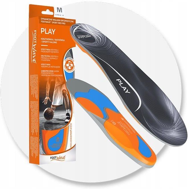 FootWave PLAY to dynamiczne wkładki ortopedyczne, które dbają o bezpieczeństwo, wygodę oraz komfort podczas popularnych aktywności sportowych, zarówno tych rekreacyjnych jak i profesjonalnych. Zapewnią większą kontrolę, odciążenie i zmniejszenie bólu w trakcie zajęć sportowych, szczególnie na halach i salach gimnastycznych czy boiskach. Nie tylko koszykówka czy siatkówka, ale też piłka ręczna, futsal, gimnastyka, lekkoatletyka, zajęcia ogólnorozwojowe czy nawet sztuki walki. FootWave PLAY to zarejestrowany wyrób medyczny i efekt pracy zespołu sportowców, projektantów i kadry medycznej. Stworzony, aby z medyczną precyzją i skutecznością odpowiedzieć na potrzeby sportu profesjonalnego, amatorskiego i codziennej rekreacji. Przeznaczone zarówno dla stóp zdrowych, jako wsparcie komfortu gry w sporty zespołowe i halowe oraz ogólnej aktywności fizycznej, jak i dla stóp z dolegliwościami, jak np. płaskostopie, koślawość, haluksy, ostroga piętowa czy zapalenie rozcięgna podeszwowego. FootWave PLAY zapobiega koślawości stóp i kolan oraz koryguje je. Działa nie tylko na objawy (skręcanie stawu skokowego do wewnątrz i uciekanie pięt na zewnątrz), ale przede wszystkim na przyczynę (zapewnia prawidłowy zakres ruchu 3D stopy). Wkładki ustawiają stopy i kończyny dolne w prawidłowych osiach Cechy: Efektywna kontrola przeciążeń kątowych Skuteczna kontrola pronacji i supinacji tyłostopia Zabezpieczenie łuków podeszwowych i rozcięgna podeszwowego Efektywna absorpcja wstrząsów Przeznaczenie: piłka nożna siatkówka Koszykówka sporty halowe rugby futbol amerykański unihokej bieganie ogólna aktywność fizyczna Wkładki FootWave mogą zostać przycięte w celu dopasowania rozmiaru do obuwia. Usuń fabryczne wkładki z butów przed włożeniem wkładek FootWave. Przyzwyczajaj stopy do wsparcia ich łuków używając wkładek przez kilka godzin dziennie, stopniowo zwiększając czas używania, aż do osiągnięcia pełnego komfortu. Wkładki można czyścić przy pomocy wilgotnej szmatki nasączonej mydłem. Nie należy ich moczyć, wkładać do pralki, suszarki oraz suszyć na kaloryferze.