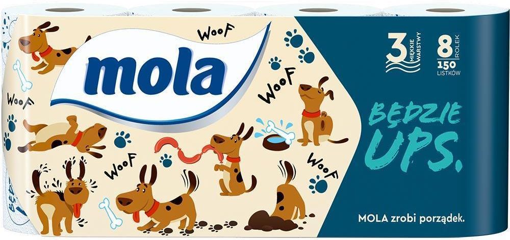 Papier Toaletowy Mola 3 Warstwowy Wzór w Pieski Miękki Celulozowy 32 sztuki Papier toaletowy Mola Będzie UPS, 3w celuloza 8szt Miękkość i komfort w Twojej łazience to priorytet? Papier toaletowy Mola Będzie UPS spełni Twoje oczekiwania. Ilość rolek: 32 Ilość warstw: 3 Ilość listków: 150/rolka Wzór: kolorowe nadruki z pieskami Najważniejsze zalety Trzy miękkie warstwy zapewniające komfort i higienę. Wytłaczana struktura miękkich poduszeczek, która delikatnie otula skórę. Brak zapachu i sztucznych aromatów, idealny dla wrażliwej skóry. Kolorowe nadruki z uroczymi pieskami, które rozweselą każdą łazienkę. Produkt polski, wspierający lokalną gospodarkę i środowisko. Delikatność i wygoda Poczuj różnicę z papierem Mola Będzie UPS! Trzy warstwy miękkiej celulozy oraz wytłoczenie w formie poduszeczek gwarantują delikatność i komfort podczas każdej wizyty w toalecie. Zapomnij o podrażnieniach i ciesz się przyjemnym uczuciem świeżości. Wesoły akcent w Twojej łazience Kolorowe nadruki z rozbrykanymi pieskami to nie tylko radość dla oka, ale także sposób na wprowadzenie pozytywnej energii do codziennej rutyny. Uśmiechnij się razem z Mola Będzie UPS! Naklejka kotek Do produktu dołączona jest urocza naklejka z kotkiem, która sprawi, że sprzątanie stanie się przyjemniejsze dla najmłodszych. Kolorowy wzór motywuje dzieci do dbania o porządek, zamieniając obowiązek w zabawę. Naklejka może być umieszczona na butelce środka czyszczącego, szafce lub zeszycie, przypominając o codziennych nawykach. To prosty, ale skuteczny sposób na naukę odpowiedzialności i zachęcenie do wspólnego sprzątania w domu. Najczęściej zadawane pytania (FAQ) Czy papier toaletowy Mola Będzie UPS jest bezpieczny dla wrażliwej skóry? O:Tak, papier toaletowy Mola Będzie UPS jest wykonany z miękkiej celulozy, nie zawiera zapachu ani sztucznych aromatów, dzięki czemu jest delikatny dla skóry, nawet tej wrażliwej. Czy papier toaletowy Mola Będzie UPS jest produktem ekologicznym? O:Tak, Mola Będzie UPS to produkt polski, wytwarzany z poszanowaniem środowiska. Krótki transport minimalizuje emisję CO2. Czy papier toaletowy Mola Będzie UPS jest wydajny? O:Opakowanie zawiera 8 rolek, każda po 150 listków, co zapewnia długotrwałe użytkowanie.