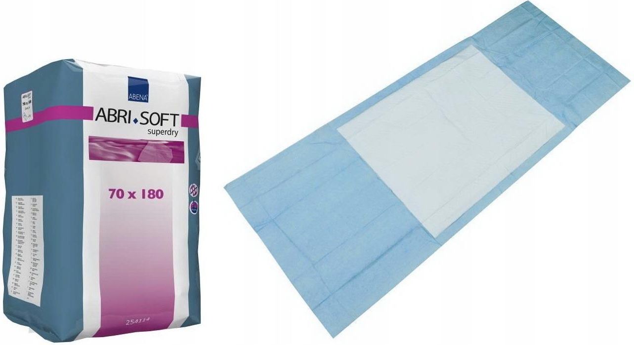 Abri-Soft Superdry to jednorazowy podkład ochronny np. na łóżka i krzesła. Odpowiedni dla osób z nietrzymaniem moczu/kału, a także w przypadku procedur niesterylnych. Podkład zawiera zarówno pulpę celulozową, jak i polimer SAP, który zatrzymuje ciecz jeszcze szybciej i utrzymuje powierzchnię w suchości, zapewniając wygodę. System zapachowy minimalizuje nieprzyjemne zapachy. Ponadto podkład ma uszczelnione krawędzie, aby zapewnić optymalną ochronę przed przeciekaniem, a pokryta miękką włókniną powierzchnia zwiększa komfort użytkownika. Użycie jednorazowych podkładów zmniejsza ryzyko zanieczyszczenia. Podkłady Abri-Soft Superdry charakteryzują się chłonnością na poziomie niskim do umiarkowanego i są dostępne w różnych rozmiarach. Są również dostępne w wersjach z zakładkami i wersji z taśmą, które są przydatne w przypadku aktywnych lub niespokojnych użytkowników, ponieważ podkład jest mocowany na prześcieradle. Materiał Pulpa, włóknina, PE, SAP, bibułka Długość/głębokość 180 cm Szerokość 70 cm Masa, netto 140 g Tolerancja +/- 2,5 cm Chłonność wg Rothwell 1750 ml Podkład należy umieścić na łóżku lub krześle niebieską stroną do dołu. Przed użyciem należy sprawdzić, czy podkład jest całkowicie wygładzony. Ilość sztuk w opakowaniu: 30 Ilość opakowań w kartonie: 2