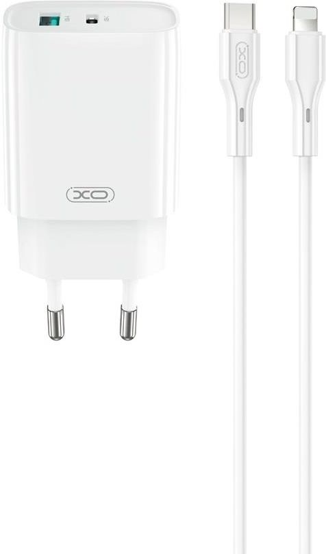 Ładowarka sieciowa USB + USB-C PD QC 20W kompatybilna z Iphone Ładowarka sieciowa XO-CE29 umożliwia niezwykle szybkie i bezpieczne ładowanie urządzeń mobilnych. Wyposażona w dwa gniazda, jedno to USB QC i drugie USB-C PD, które obsługuje technologię szybkiego ładowania Power Delivery PD pozwala na znacznie szybsze niż standardowe naładowanie telefonu. Zaawansowany system zarządzania energią zapewnia optymalny prąd ładowania. Ładowarka posiada wielostopniowy system ochrony zapewniający stabilną i bezpieczną pracę, jednocześnie eliminując ryzyko uszkodzenia ładowanego urządzenia. Zapewnia wystarczającą ilość energii do szybkiego ładowania nawet największych dostępnych urządzeń mobilnych. Klasyczny wygląd pasuje do wszystkich rodzajów wnętrz, a jakość wykonania wskazuje, że jest to urządzenie solidne i trwałe. Główne cechy Umożliwia ładowanie smartfonów oraz tabletów (włącznie z nowymi modelami) Często wybierana jako wysokiej klasy zamiennik do ładowania najnowszych modeli iPhone 11 / 11 Pro / 11 Pro Max / 12 Mini / 12 / 12 Pro / 12 Pro Max Niewielkie rozmiary oraz szeroki zakres napięć pozwolą zabrać ładowarkę w każdą podróż (doskonale mieści się w torebce, torbie na laptopa czy plecaku) Wbudowana technologia szybkiego ładowania PD 20W (Power Delivery) Ładowarka automatycznie dobierze moc do ładowanego urządzenia - bezpieczna dla baterii Twojego telefonu! Zapakowana w eleganckie pudełko producenta - idealna na prezent! Specyfikacja Napięcie wejściowe: AC 100 - 240 V / 50 - 60Hz Napięcie wyjściowe dla USB typ C: DC 5.0 V - 3A / 9.0 V - 2,22A / 12V - 1.67A (20W) Napięcie wyjściowe dla USB typ A: DC 5.0 V - 3A / 9.0 V - 2A / 12V - 1.5A (18W) Maksymalna moc wyjściowa: 20W Funkcja szybkiego ładowania PD 3.0 20W Automatyczne dostosowywanie prędkości ładowania do urządzenia Obsługiwane protokoły: PD2.0, PD3.0, QC2.0, QC3.0, AFC, FCP, BC1.2, Apple 2.4A, Kolor: Biały Waga: 40 g Ładowarka sieciowa została wykonana z twardego poliwęglanu, który dzięki błyszczącej powłoce jest łatwy w czyszczeniu. Ładowarka zachowuje stylowy oraz elegancki design przez długi czas. Urządzenie posiada niewielkie wymiary, dzięki czemu bez problemu zmieści się w każdym plecaku czy torbie. Kompatybilna z nowymi modelami iPhone'a. Funkcja szybkiego ładowania jest kompatybilna m.in. z poniższymi modelami iPhone oraz tabletami iPad. iPhone 8 iPhone 8 PLUS iPhone SE 2020 iPhone XR iPhone X iPhone XS iPhone XS MAX iPhone 11 iPhone 11 PRO iPhone 11 PRO MAX iPhone 12 iPhone 12 MINI iPhone 12 PRO iPhone 12 PRO MAX LAD0XOCE29