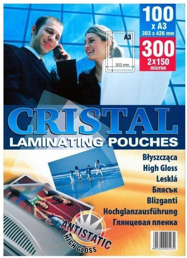 Folia do laminowania Cristal A3 150 mic Folia idealnie nadaje się do laminowania np. instrukcji BHP, ogłoszeń, plakatów czy zdjęć. Jednocześnie chroni dokument przed uszkodzeniami, zabrudzeniami, a także nadaje blask i trwałość zalaminowanemu dokumentowi. Posiada właściwości antystatyczne redukujące elektryzowanie, przyczepianie czy przesuwanie się laminowanego dokumentu. Opakowanie zawiera 100 sztuk arkuszy o grubości 150 mic.