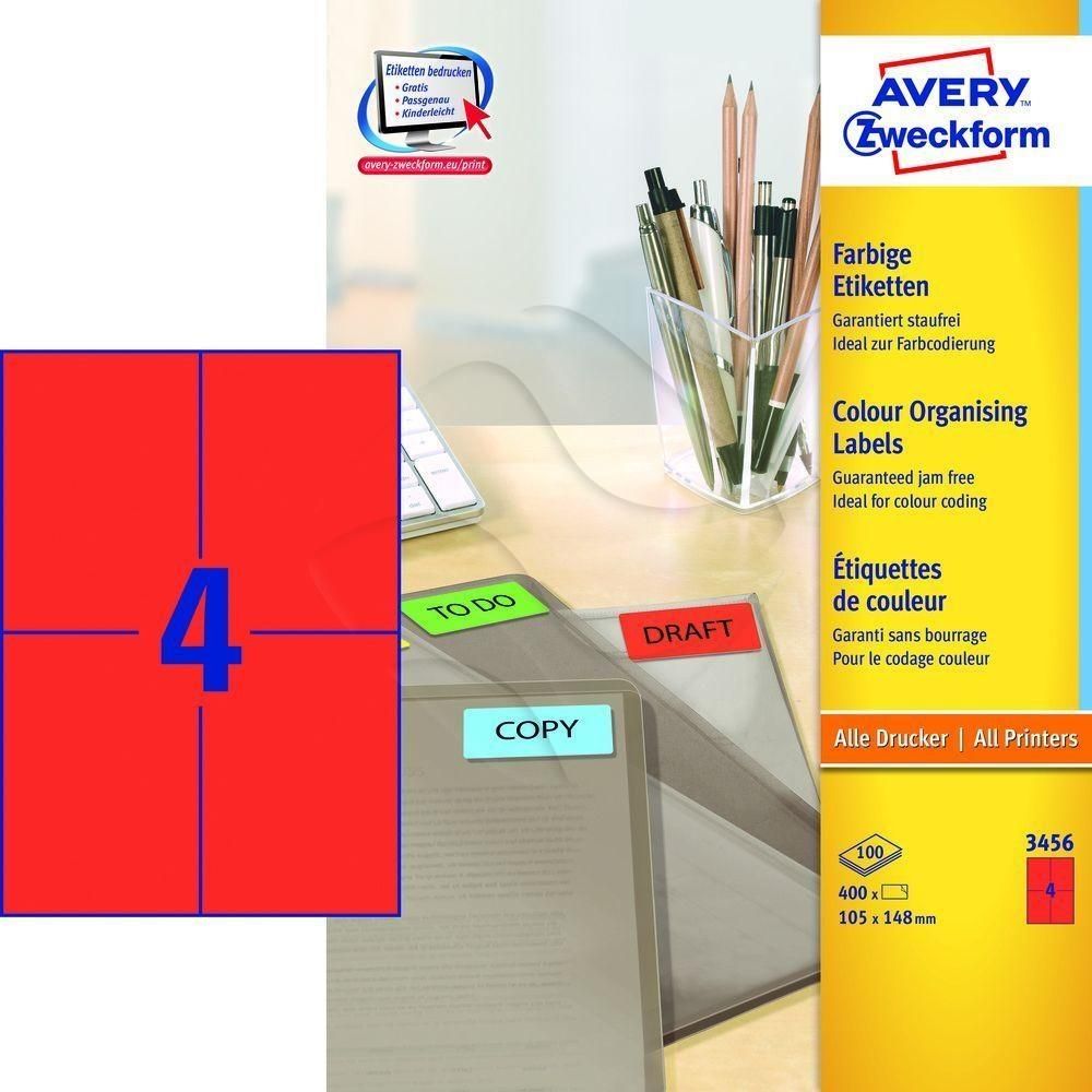 Avery Zweckform Etykiety Samop. Avery 105x148 4/A4 A'100 Czerwone No.3456 Frampol
