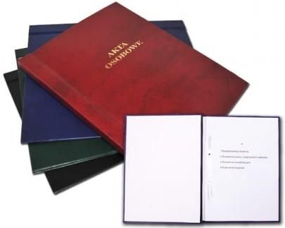 SPECYFIKACJA TECHNICZNA Teczka wykonana z kartonu pokrytegoskóropodobnym tworzywem. Wewnątrz trzy przekładki A B C D. Grzbiet teczki usztywniony.Tworzywo wierzchnie dostępne w czterech kolorach:czarnym, bordowym, granatowym i zielonym.Pakowane po 10 szt. Kod 1822000, Teczka akt osobowych, bordowa.Kod 1822001, Teczka akt osobowych, granatowa.Kod 1822002, Teczka akt osobowych, zielona.Kod 1822003, Teczka akt osobowych, czarna.
