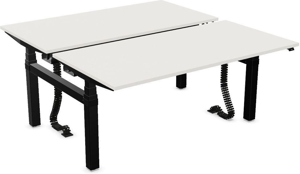Nowoczesne, ergonomiczne i praktyczne stanowisko workbench dla dwóch użytkowników z elektryczną regulacją wysokości eModel 2.0 H-LEG M RC na podstawie typu "H" firmy Nowy Styl. Elektryczna regulacja wysokości biurka przy pomocy przycisków lub panelu sterowania. Dwa blaty wykonane z płyty melaminowej o wymiarach 160x80 cm, grubość 25 mm. Blaty przesuwne. Kilkanaście kolorów do wyboru, dodatkowo obrzeże blatu może być w innym kolorze. Podstawa typu "H" trzysegmentowa wykonana z metalu - cztery kolory do wyboru.