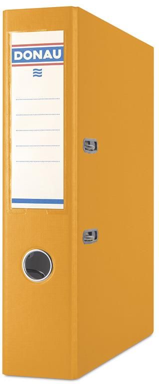 SEGREGATOR DONAU PREMIUM-S, PP, A4/75MM, POMARAŃCZOWY najwyższej jakości segregator wykonany z tektury o grubości 2,1mm i gramaturze 1290gsm, wyposażony w dolną listwę wzmacniającą posiada Zielony Punkt (Der Grüne Punkt) - udział w systemie recyklingu i odzysku odpadów wynikający z przepisów prawa …