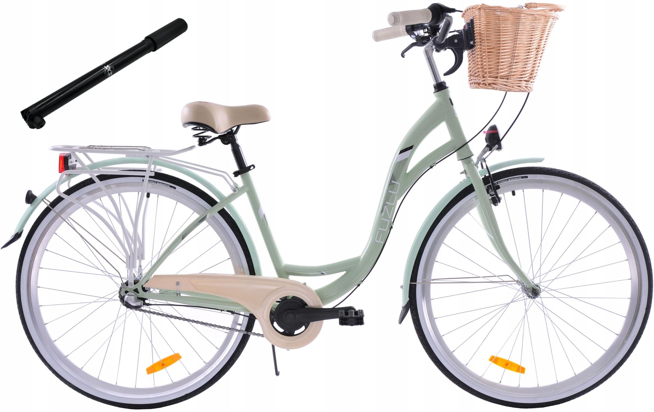 Rower miejski 28 FUZLU NEVADA miętowy SPECYFIKACJA Rama/kolor stalowa typu łabędź/miętowy Rozmiar ramy 18" Widelec stalowy Biegi 1 Hamulec przód V-Brake aluminium Hamulec tył torpedo (w pedałach) Korba jednorzędowa Suport na łożyskach maszynowych Piasta przód stal Piasta tył stal Obręcze wzmacniane stożkowe aluminiowe Opony 28x1,75 Kierownica stalowa jaskółka retro Wspornik kierownicy stalowy Siodło na sprężynie Pedały tworzywo Wyposażenie: błotniki, bagażnik, oświetlenia LED, podpórka, osłona łańcucha, kosz, pompka Producent zastrzega sobie nieznaczne zmiany w specyfikacji Rower standardowo wysyłany jest w 80% złożony. Do przykręcenia pozostają jedynie: przednie koło, pedały, kierownica oraz siodełko Istnieje możliwość zamówienia roweru w wersji złożonej* - na kołach *Do przykręcenia pozostaną wtedy jedynie pedały oraz kierownica i kosz NALEŻY WYBRAĆ - KURIER DHL - W OPCJACH DOSTAWY.