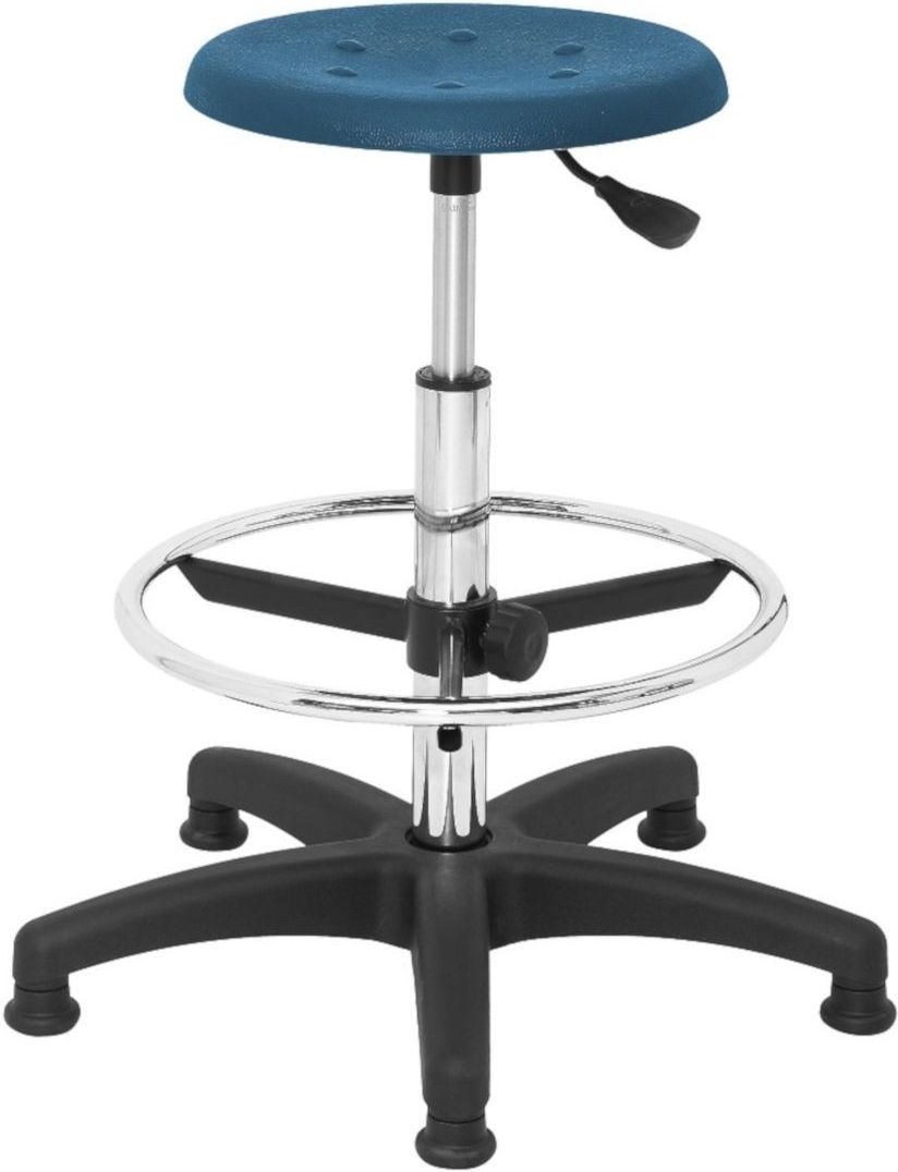 Specjalistyczne krzesło obrotowe na stopkach taboret Ergowork POLO Special CH Blue. Antypoślizgowe i łatwozmywalne siedzisko (miękkie, odporne na ścieranie i działanie środków czyszczących) wykonane z poliuretanu. Podstawa na stopkach. Posiada regulację wysokości siedziska oraz podnóżek o średnicy 45 cm (bez regulacji). Produkt z przeznaczeniem jako taboret laboratoryjny, pomocnik do stania przy linii produkcyjnej, kasie sklepowej, gastronomii. Produkty ERGOWORK posiadają szereg certyfikatów i atestów - szczegóły niżej. {{block class="Magento\Cms\Block\Block" block_id="logo_ergowork"}}