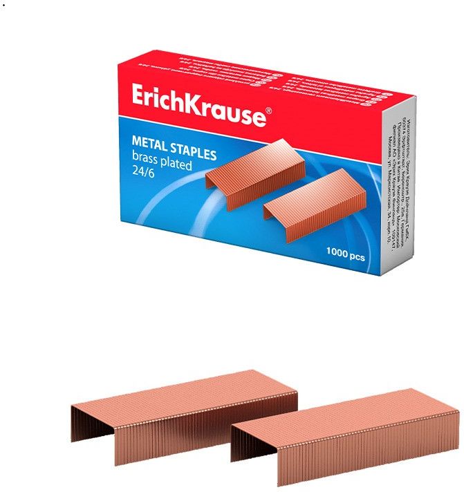 Zszywki mosiądzowane Erich Krause 24/6 – 1000 sztuk Solidne zszywki Erich Krause 24/6 pokryte mosiądzem zapewniają skuteczne i trwałe zszywanie dokumentów. Dzięki ostro zakończonym końcówkom z łatwością przebijają wiele kartek naraz. Wykonane ze wzmocnionego drutu stalowego o podwyższonej odporności na korozję. Produkt idealny do zszywaczy biurowych. Stabilne listwy zszywek nie rozpadają się w trakcie użytkowania. Rodzaj: №24/6 Materiał: stal mosiądzowana Ilość: 1000 sztuk w pudełku Ostre zakończenia – łatwe zszywanie Odporność na rdzę i rozwarstwianie