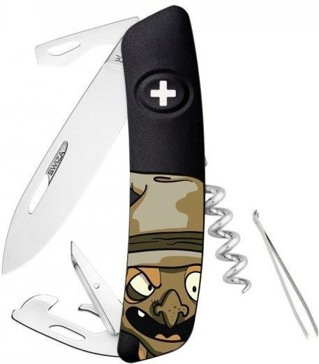 Scyzoryk SWIZA HALLOWEEN D03 Witch KNB.0030.H007Scyzoryk szwajcarski SWIZA w wersji Halloween ! Scyzoryk SWIZA to nowoczesny scyzoryk. Jego ergonomiczny i zakrzywiony kształt, pewny chwyt, miękkie w dotyku okładziny oraz łatwo dostępne ostrze i narzędzia, czynią z niego najwygodniejszy i najłatwiejszy w użyciu scyzoryk, który do tej pory powstał.Kroku formie dotrzymuje funkcjonalność. Nowy nóż SWIZA posiada długie (75mm), mocne ostrze ze stali nierdzewnej (stal 440, twardość 57 HRC), z wycięciem, dzięki któremu łatwo je otworzyć zarówna prawą, jak i lewą dłonią. Ostrze jest blokowane, a zwolnienie blokady wkomponowano tak, że zwalnia się ją poprzez naciśnięcie szwajcarskiego krzyża. Pozostałe narzędzia to otwieracz do butelek wraz z dużym wkrętakiem płaskim, otwieracz do puszek wraz z mniejszym wkrętakiem płaskim oraz wcięciem do zdejmowania izolacji, oraz 5-zwojowy korkociąg. Narzędzia oraz konstrukcja scyzoryka są zrobione ze stali nierdzewnej, co w połączeniu z wysokiej jakości plastikową rękojeścią, pozwala na łatwe utrzymanie czystości scyzoryka. Można go od czasu do czasu myć w zmywarce (do 80°C), jeśli następnie naoliwimy ruchome części olejkiem. Ten nowy szwajcarski scyzoryk to nowy standard w świecie kieszonkowych scyzoryków. Jest to wszechstronne i użytkowe narzędzie, które obowiązkowo powinieneś posiadać, jeśli chcesz być przygotowanym na wyzwania i przygody, które przynosi codzienne życie.Długość: 95 mmOprawa: gumowanaIlość warstw narzędzi: 21. blokowane ostrze2. szydło / rozwiertak3. 5-zwojowy korkociąg4. otwieracz do butelek wraz z 5. - dużym wkrętakiem płaskim6. otwieracz do puszek wraz z 7. - mniejszym wkrętakiem płaskim oraz 8. - wcięciem do zdejmowania izolacji9. pęsetaTyp opakowania: plastikowe przeźroczyste Wymiary scyzoryka:- długość scyzoryka: 95 mm- długość ostrza: 75 mm- szerokość (strona oprawy): 29 mm- grubość (strona narzędzi): 16 mmWaga scyzoryka: 85 gGwarancja: dożywotniaScyzoryki SWIZA objęte są wieczystą gwarancją na wszelkie wady materiałowe i fabryczne. Udzielana jest na podstawie dowodu zakupu, z widoczną datą zakupu. Gwarancja nie obejmuje nadużywania, niewłaściwego użytkowania lub normalnego zużycia....